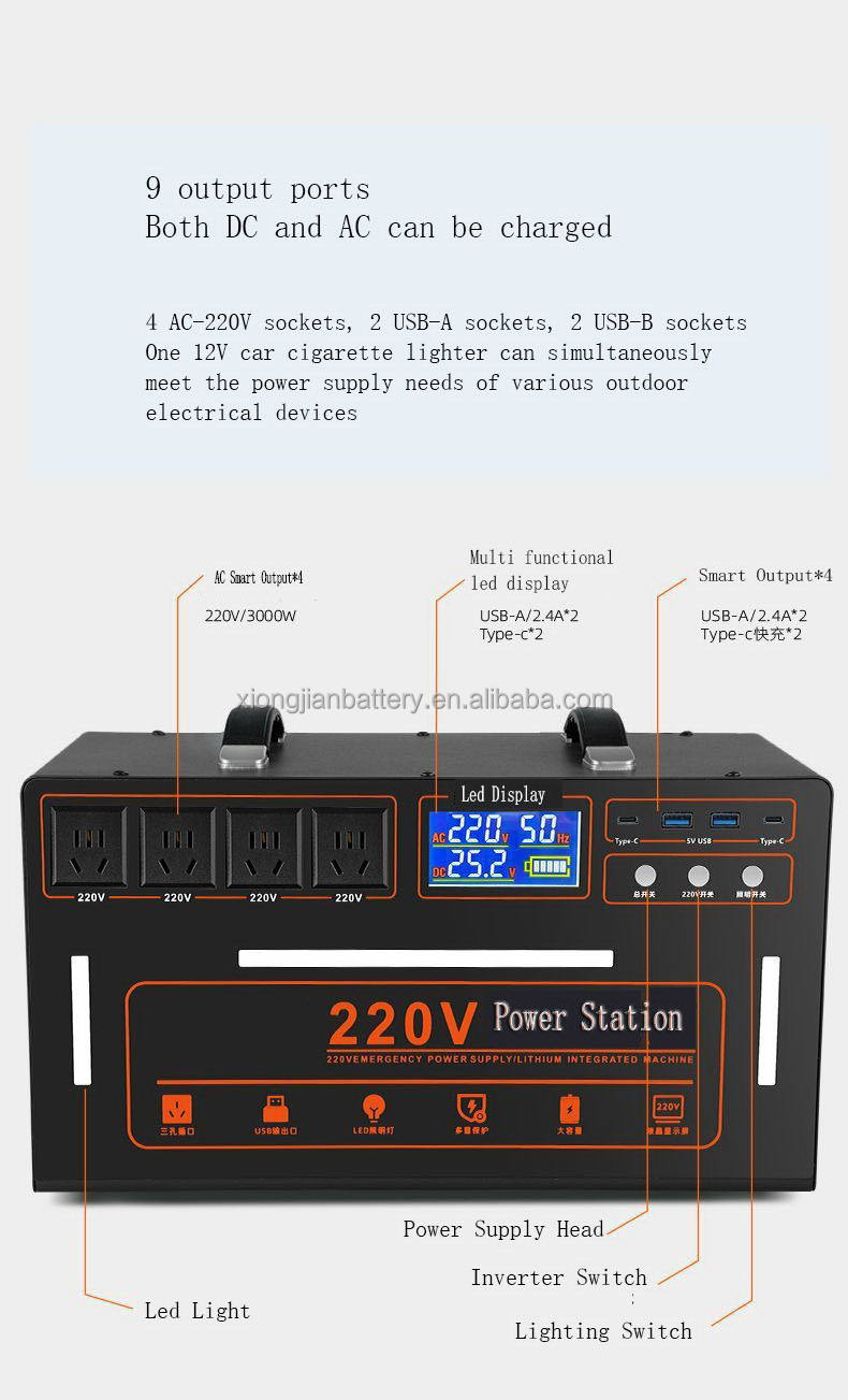 Portable 1000W-5000W Grid Solar Generator with 110V 220V Lithium Ion Battery and MPPT Controller AU Plug Power Station