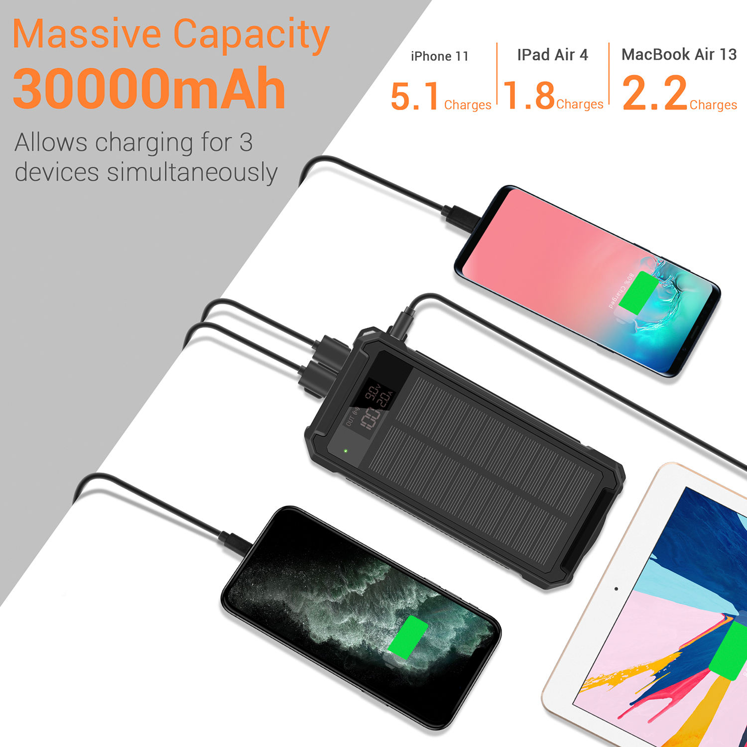 30000Mah Wireless Phone Charger Banks Solar Outdoor Travel Fast Charging External Battery Power Bank Portable
