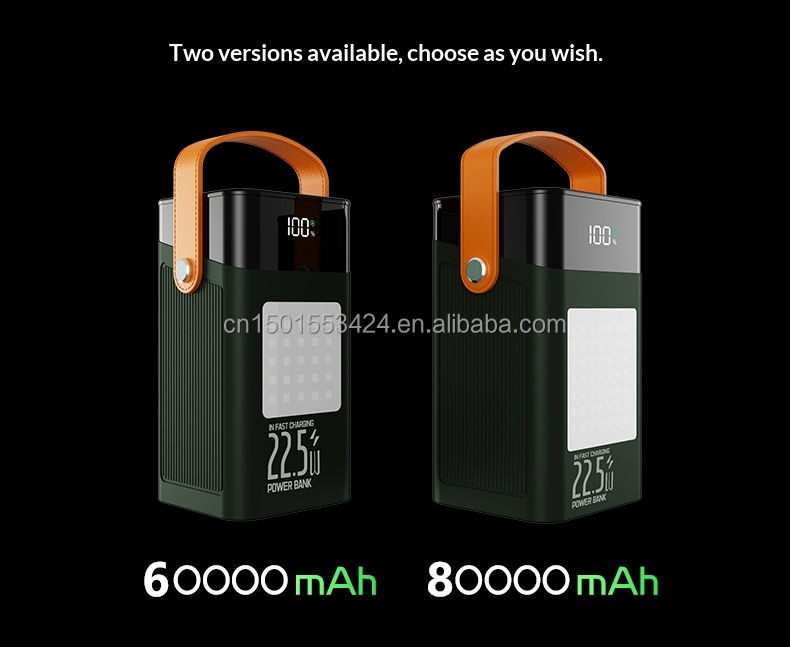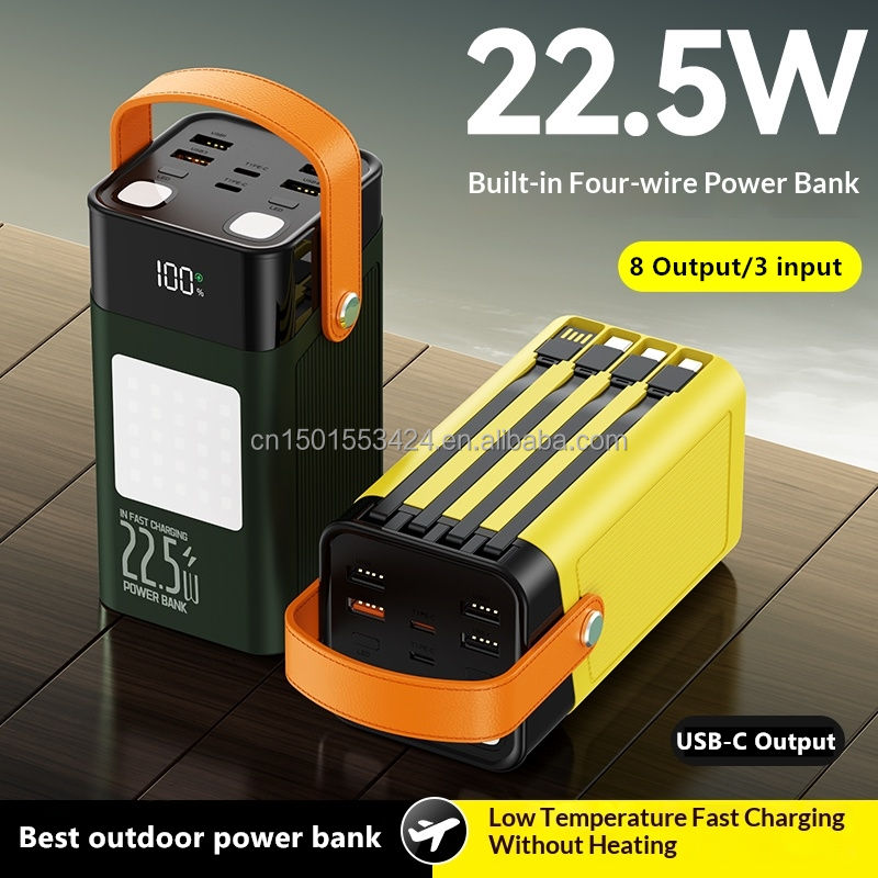 Multifunctional Outdoor Power Bank 80000mah PD 22.5W Fast Charging with Built in Cables 4 USB Type-C LED Display Camping Lights