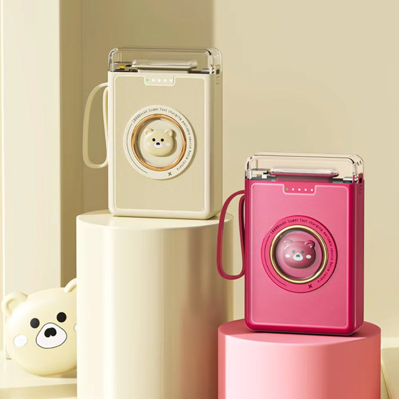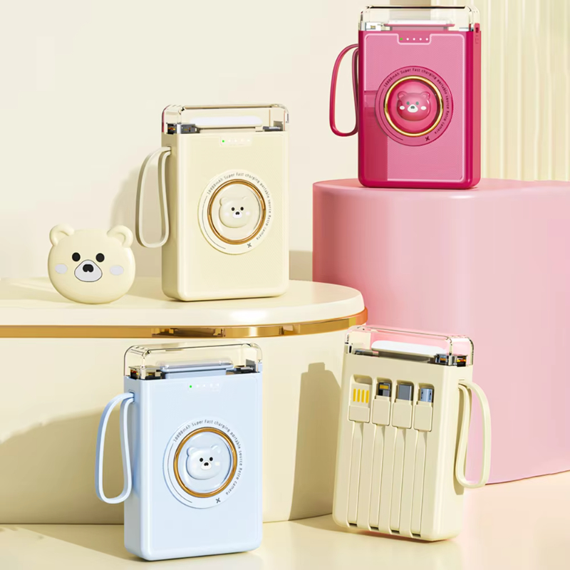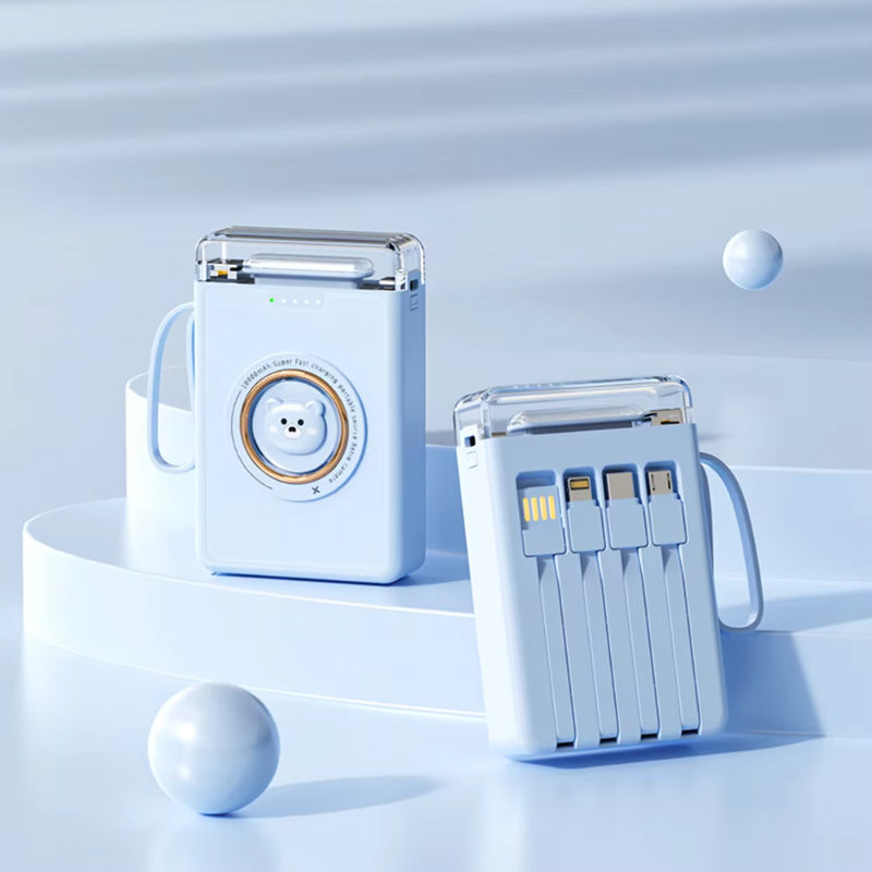 Factory Direct 10000mAh Cute Power Bank with Four Fast Charging Cables 10W Output Power Mobile Phone Portable Charger