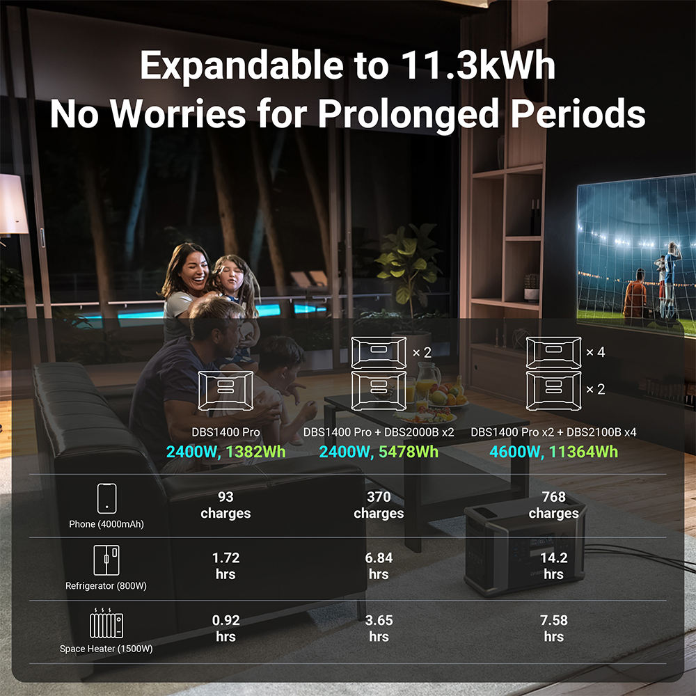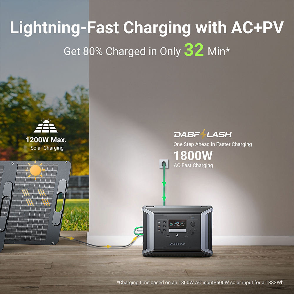 Dabbsson 1400pro with DBS2100B Expansion Battery 2400W to 4600w Portable Power Stations Industrial Solar Generator for Home Use