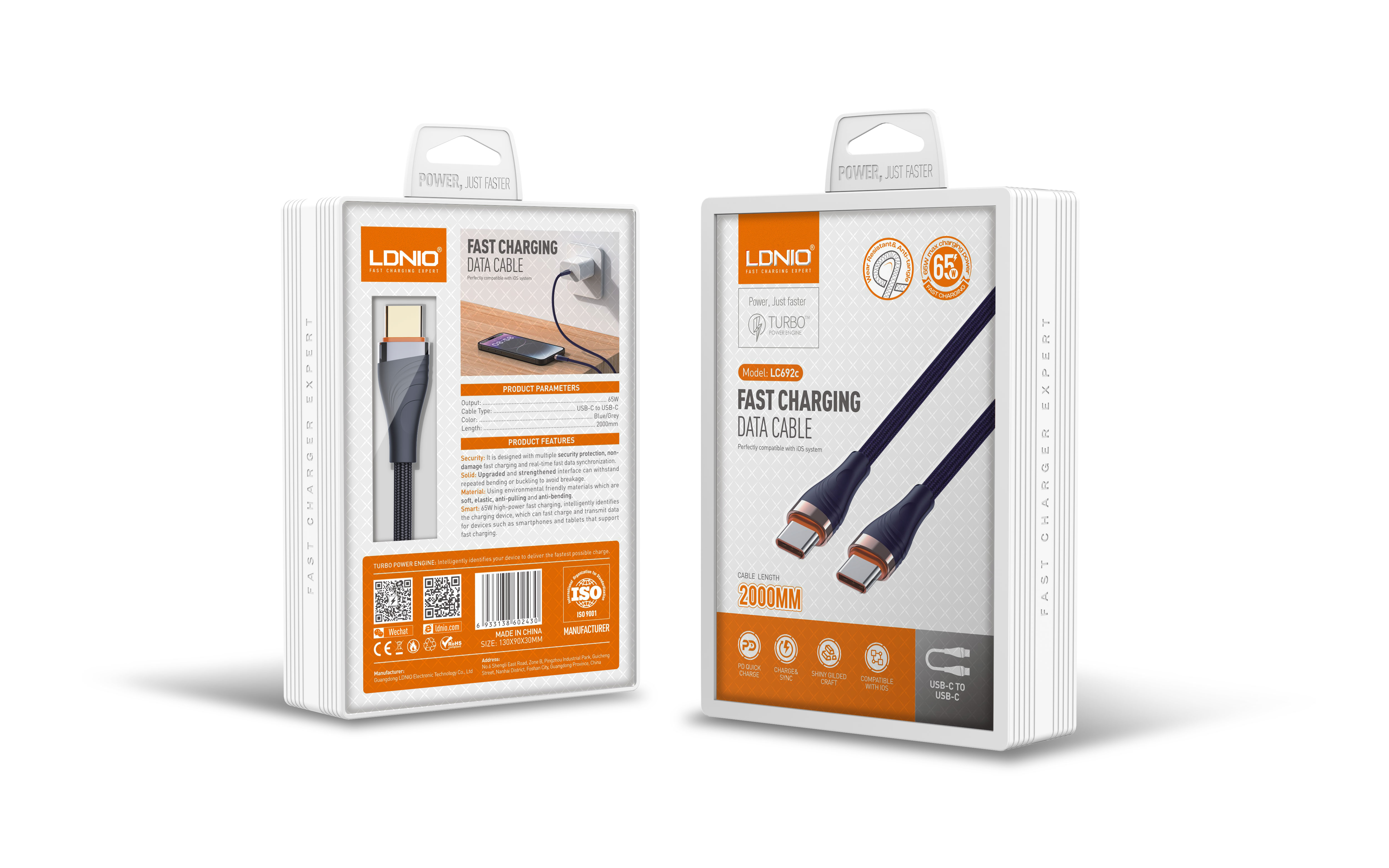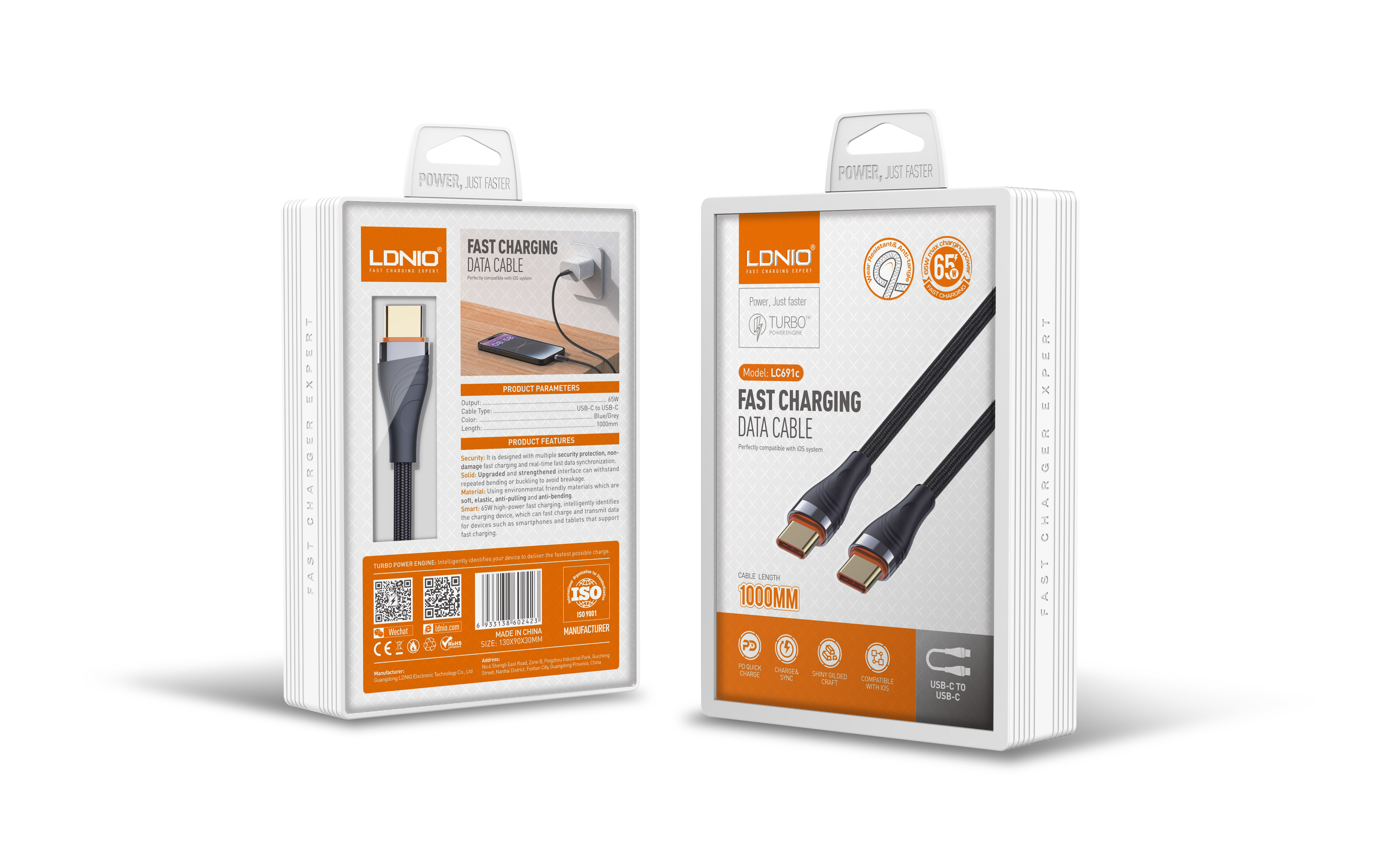 LC691c "PD65W Type-C to Type-C Cable Support PD and QC fast charging"