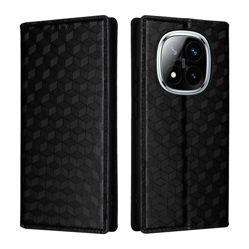 For Redmi Note 14 Pro 5g Wallet Wristlet Flip Phone Cover Diamond-shaped Three-dimensional Pattern Pu Leather Phone Case - Buy M