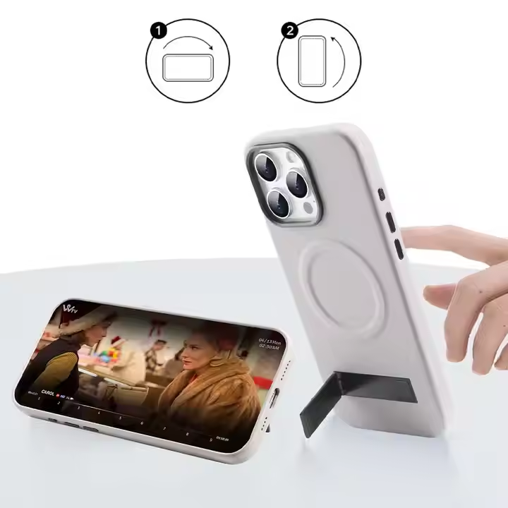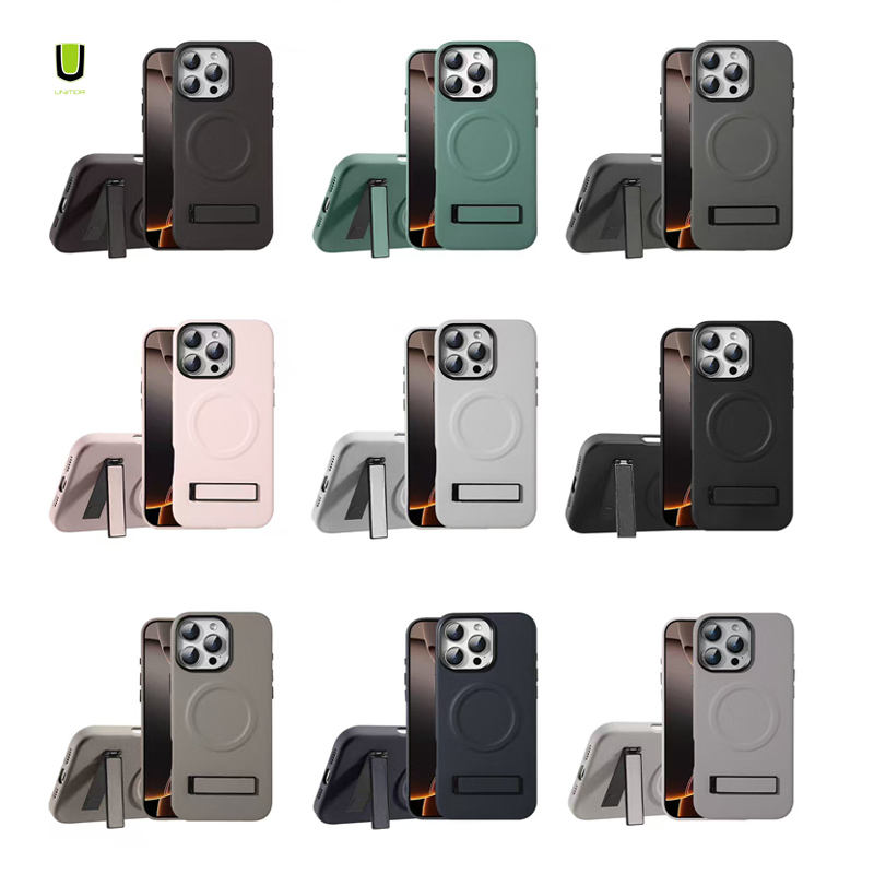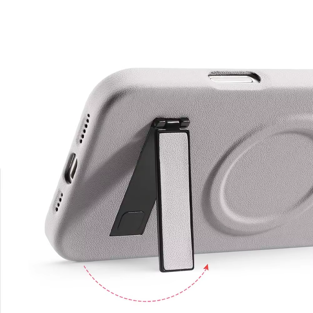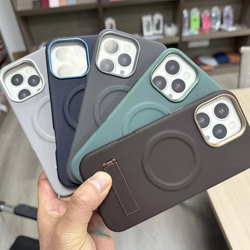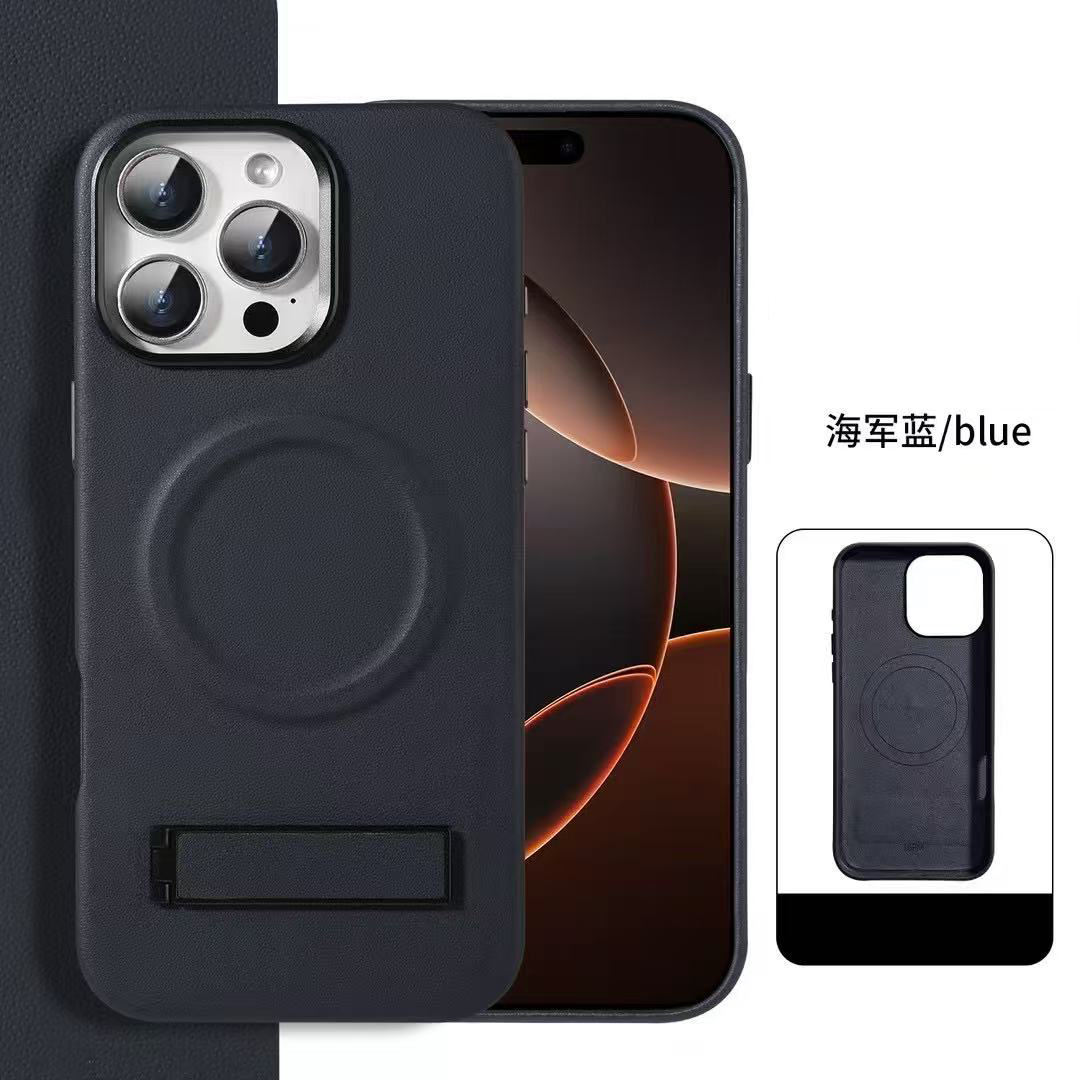 Official Original Luxury Leather Bracket Magnetic Hard Shockproof Phone Cover Cases for iPhone 16 Pro Max 15 Plus 14 13 12 11