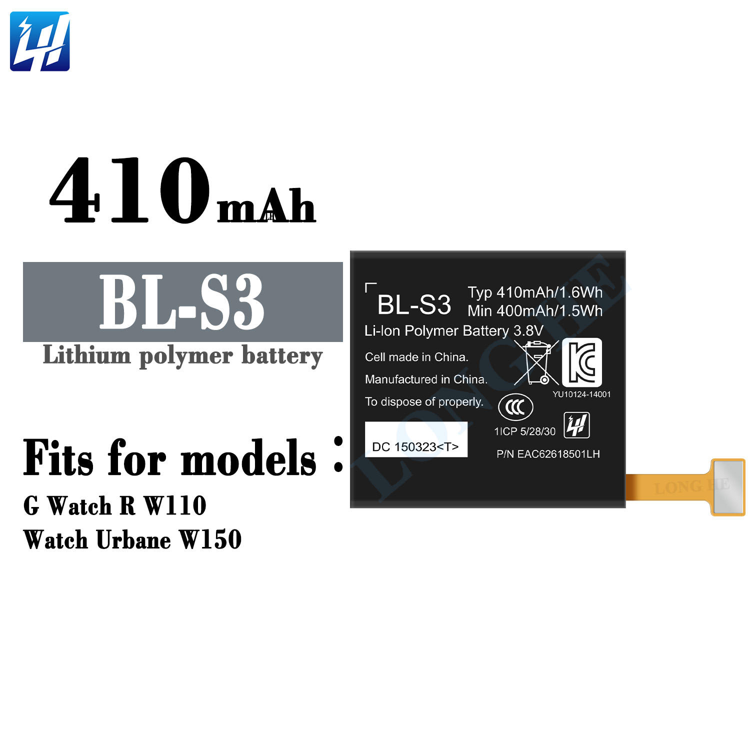 410mah Battery 410mAh 1.6Wh BL-S3 Smart-Watch Battery for LG G Watch R W110 W150 Watch Battery