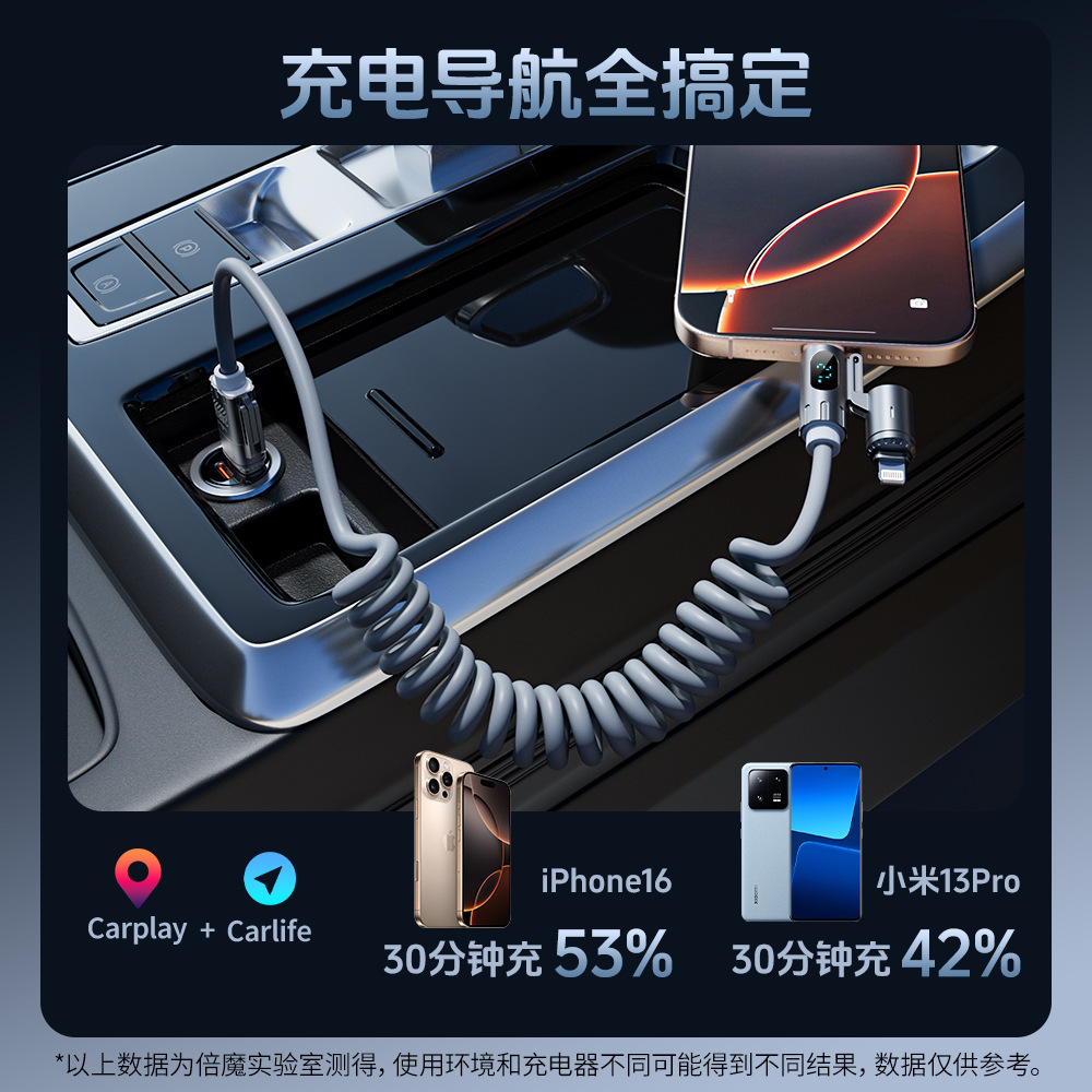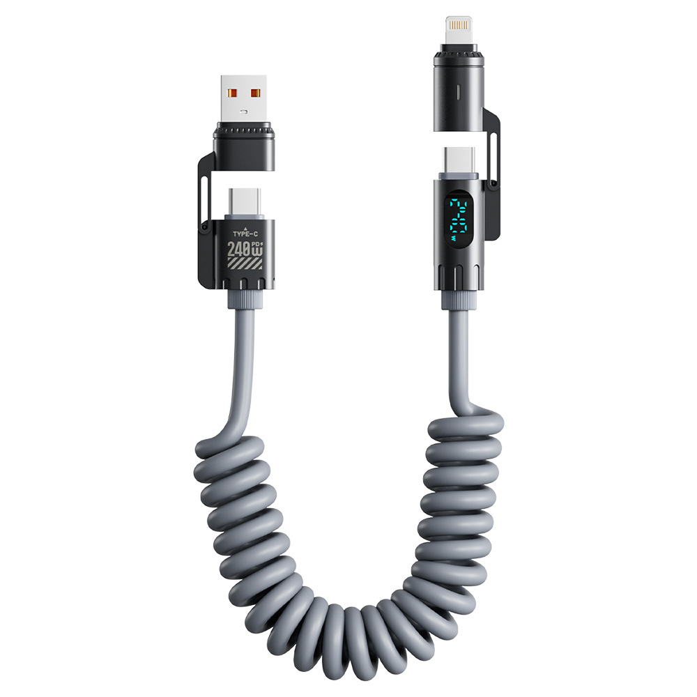 ZSTD 240W fast charging spring data cable intelligent digital display car four in one 2m charging cable