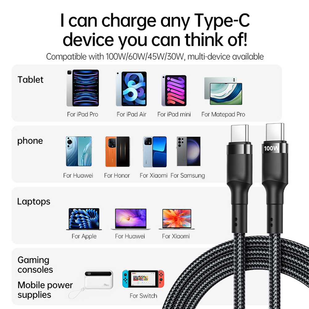 100W USB C to USB C Fast Charging Cable Braided C to C Charger Cord Data Cable for IPhone Android