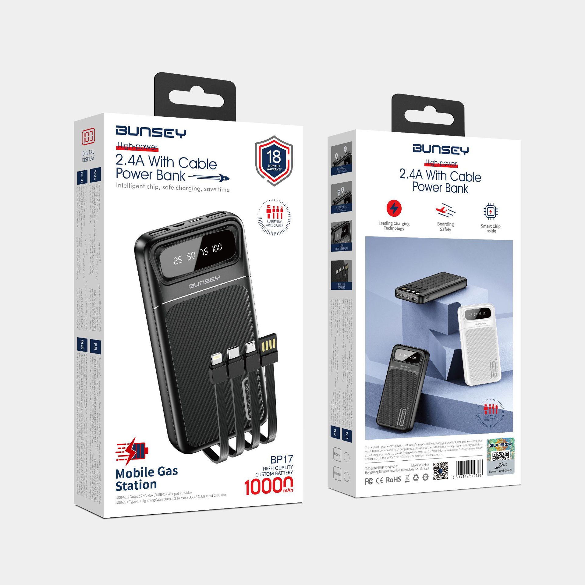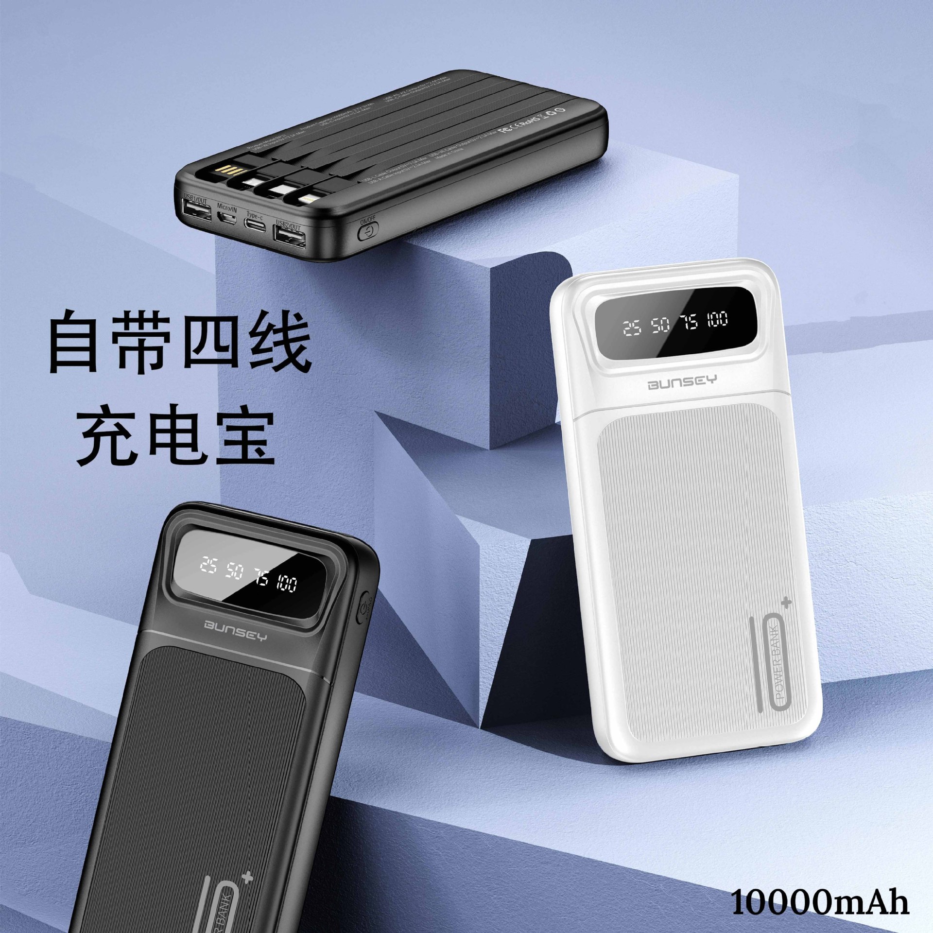 Bunsey BP17 10W fast charging portable outdoor power bank comes with a four wire 10000mAh large capacity power bank