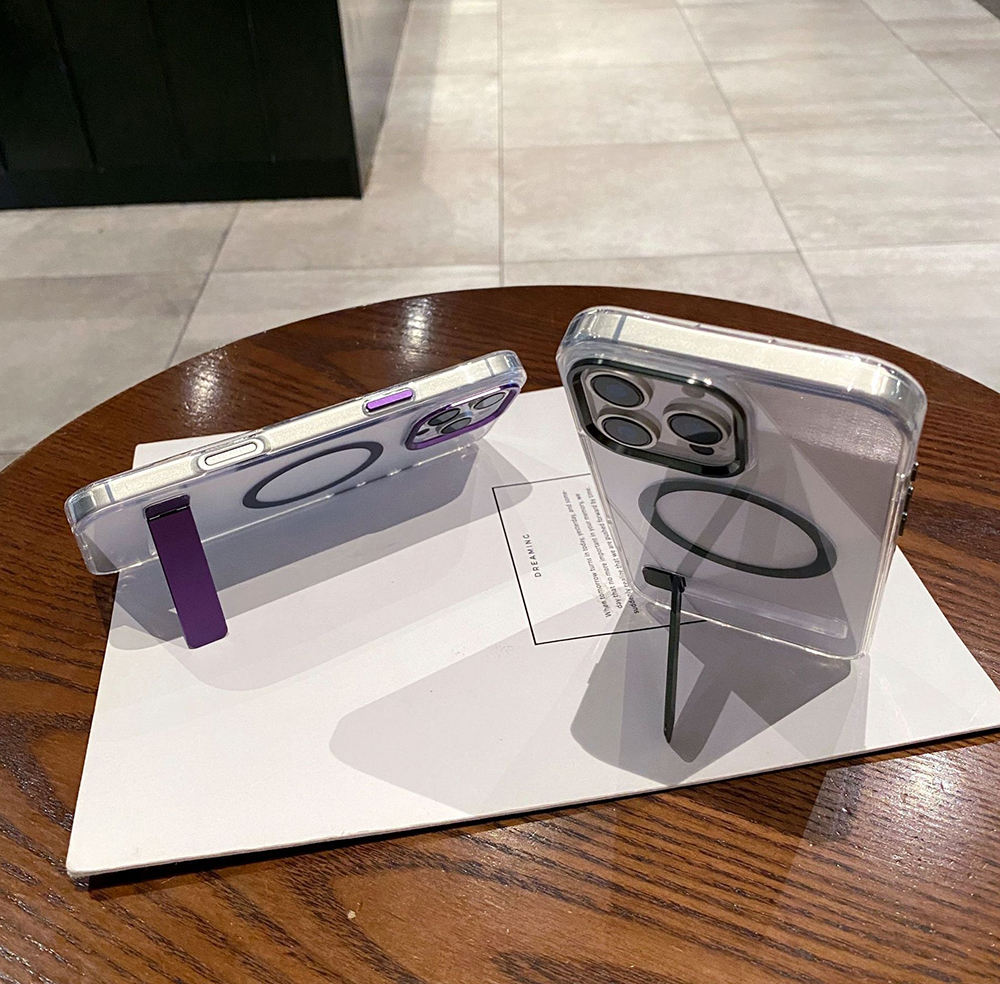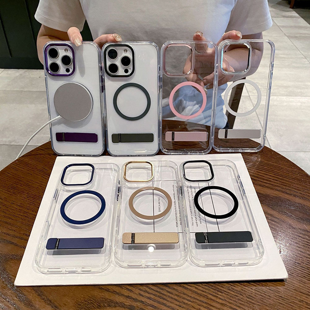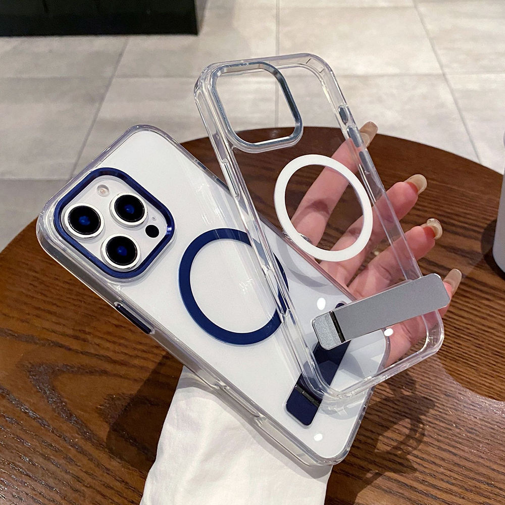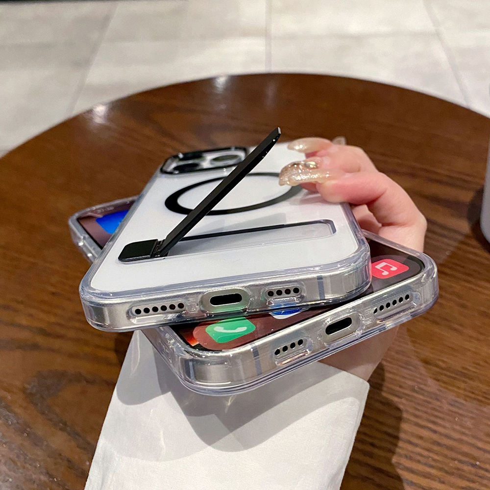 Premium TPU+PC Stylish Magnetic Stander Holder Transparent Design Shockproof Protective Case Cover for Apple iPhone Protection