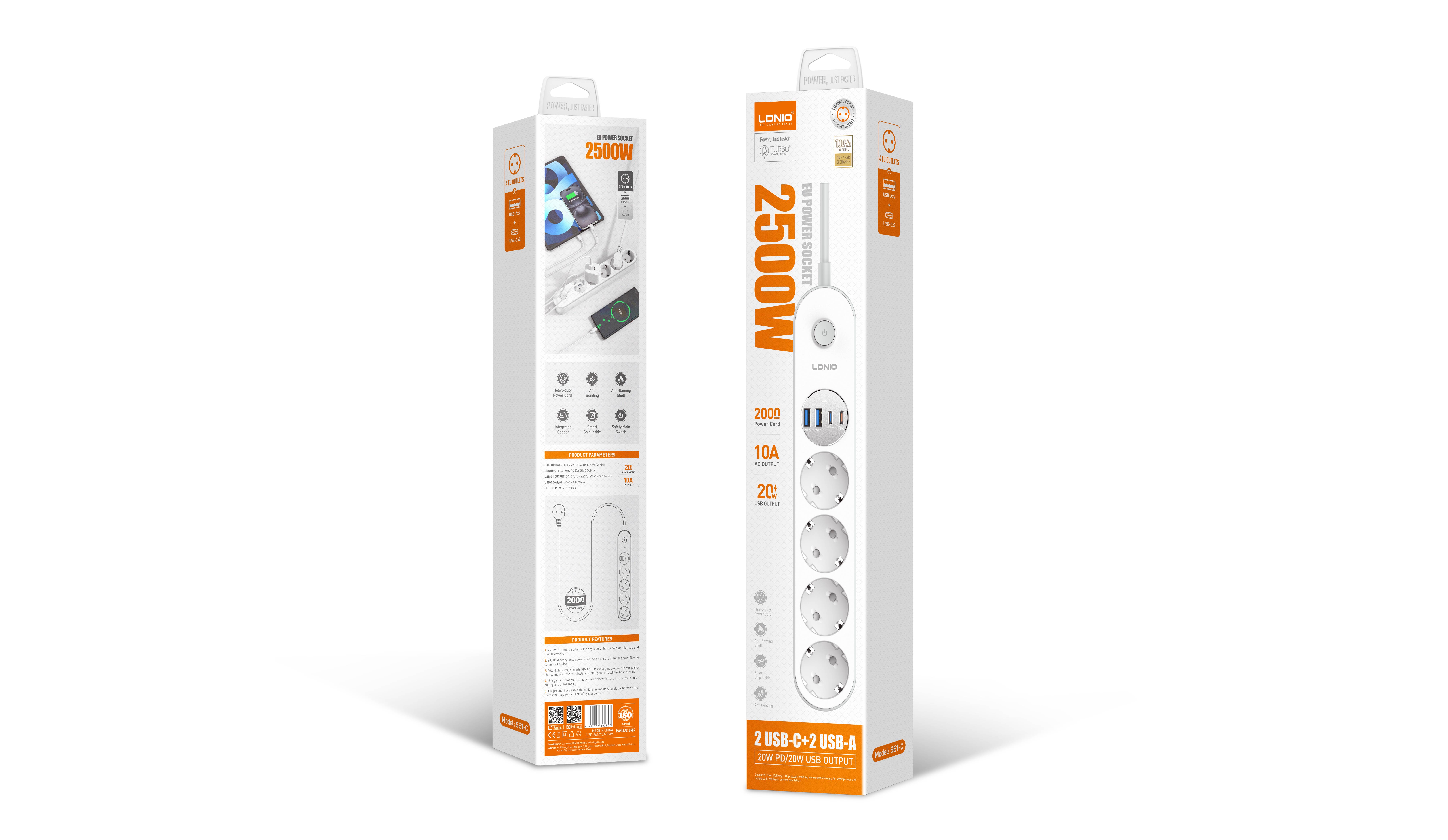 LDNIO--Power Strip--SE1-C "4 POWER SOCKETS +PD20W USB Ports POWER CORD:2M"
