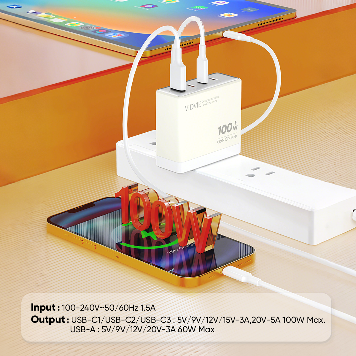 20V/5A,15V/3A,12V/3A,9V/3A,5V/3A (GaN 100W Max)