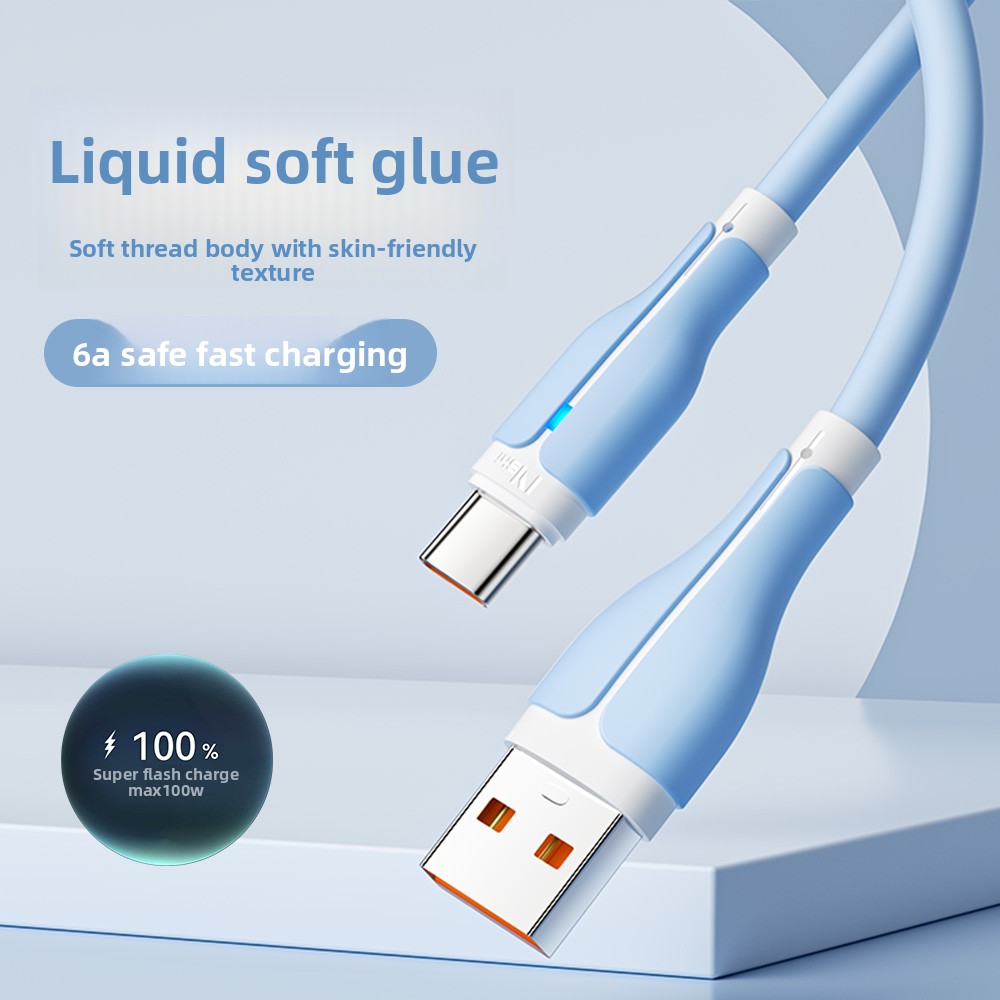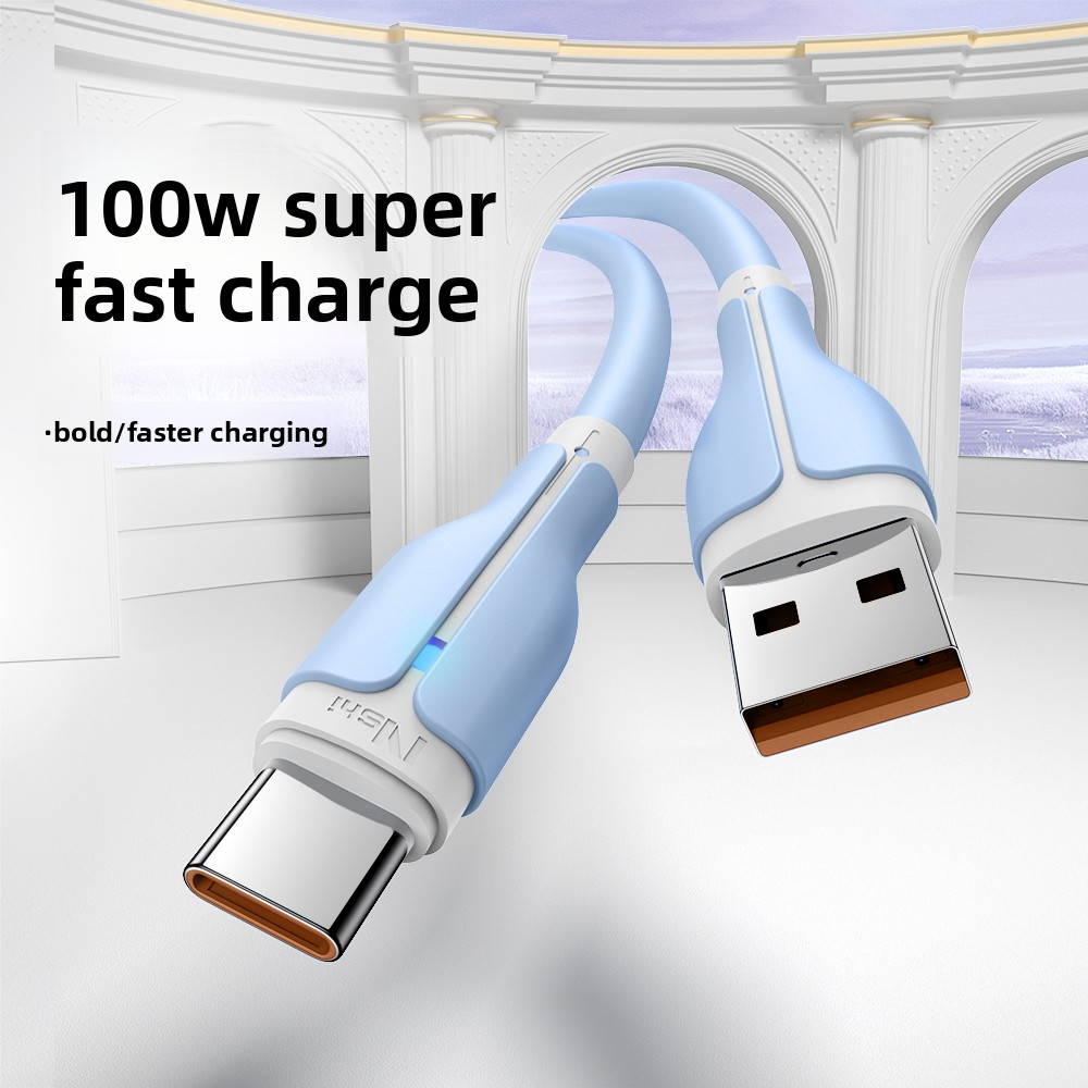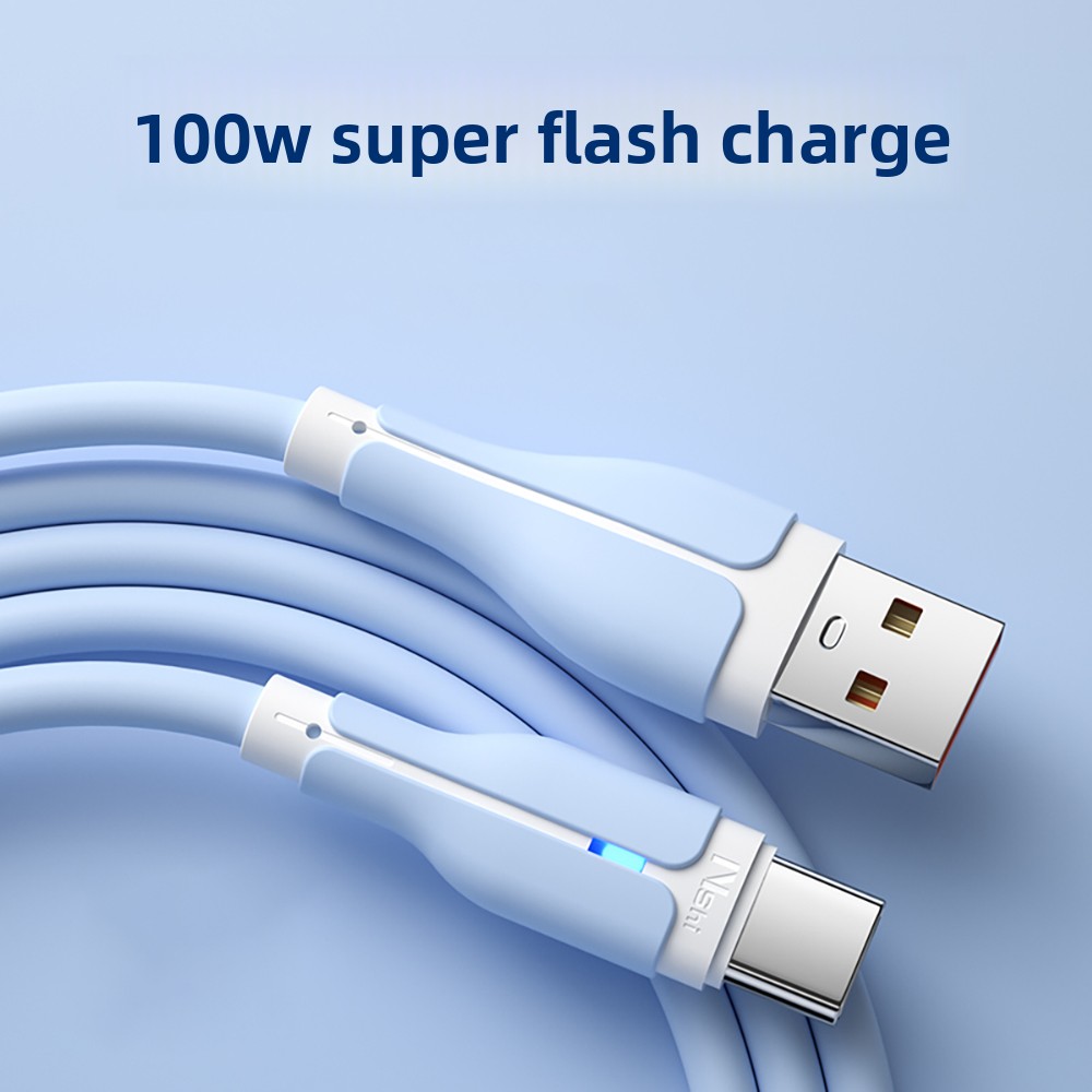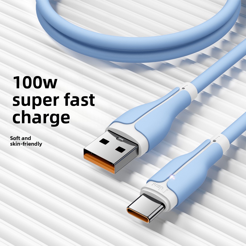 Hot Sale 100W Soft Silicone Blue Pick Color Fast USB Type C Charging Cable for Android/Phone/Pad/Laptop