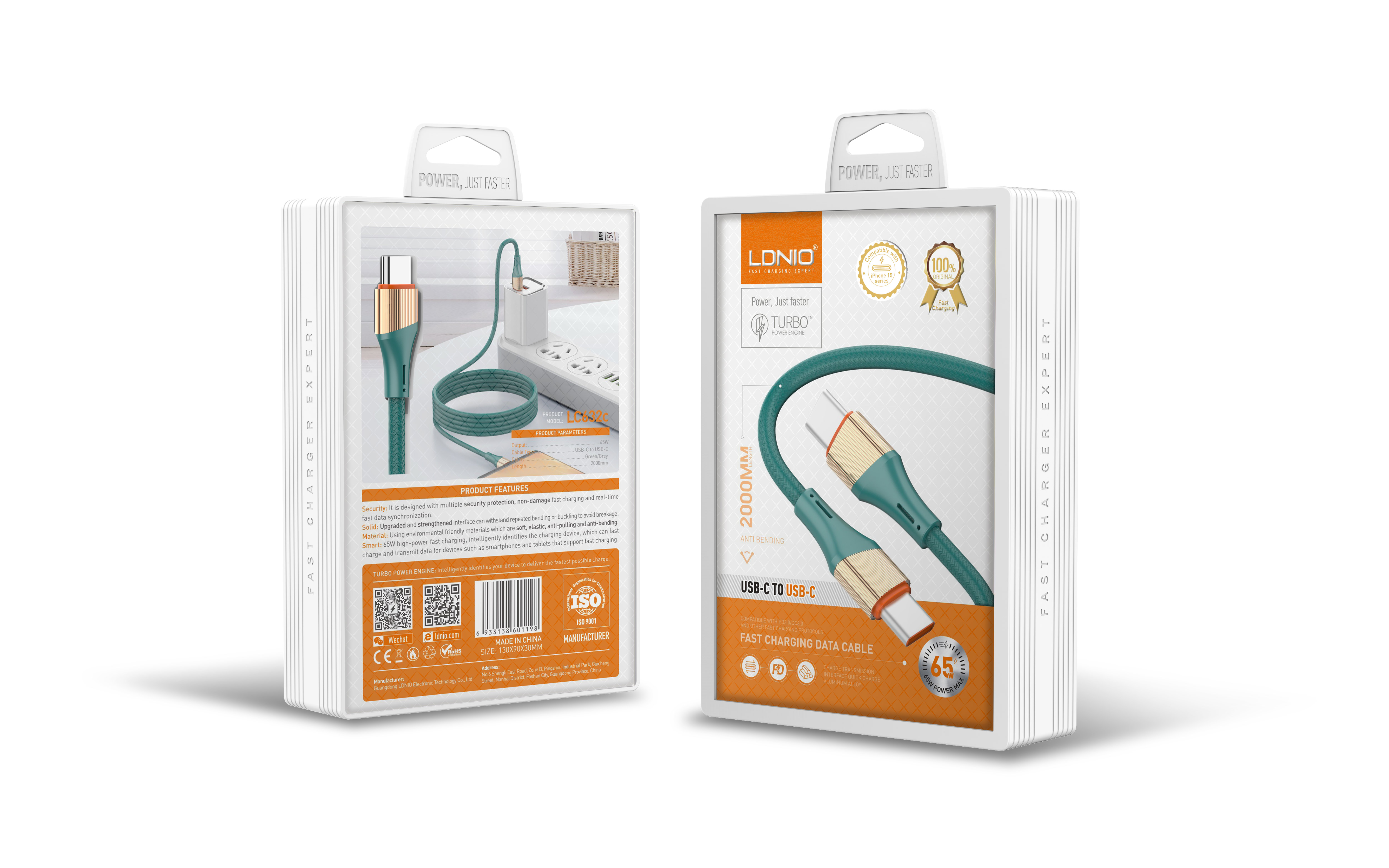 LC632C "length :2m 65W Type-C to Type-C Cable Support PD and QC fast charging"