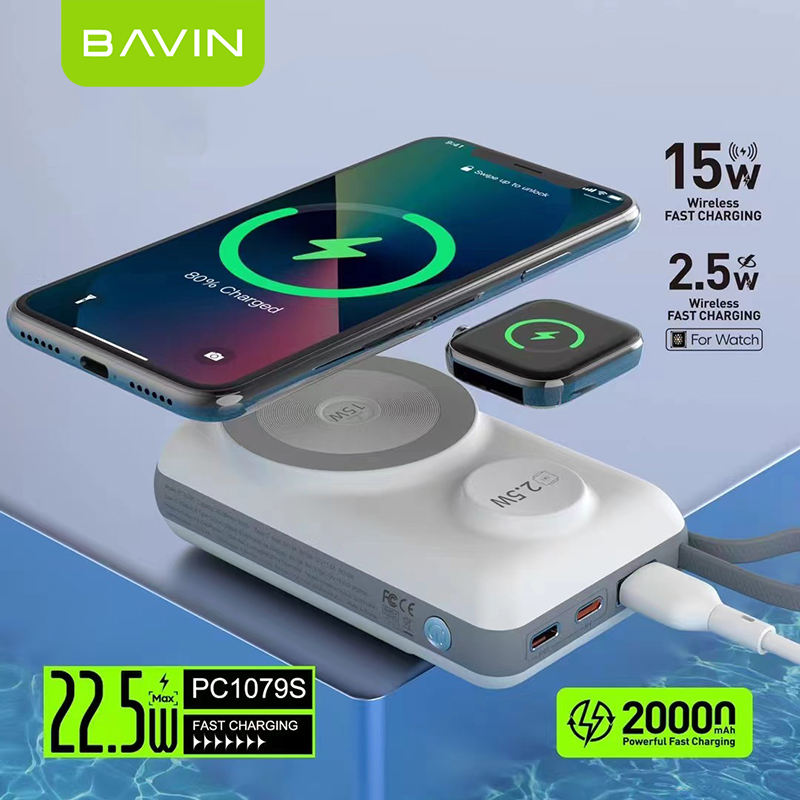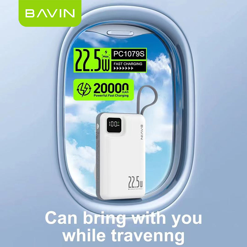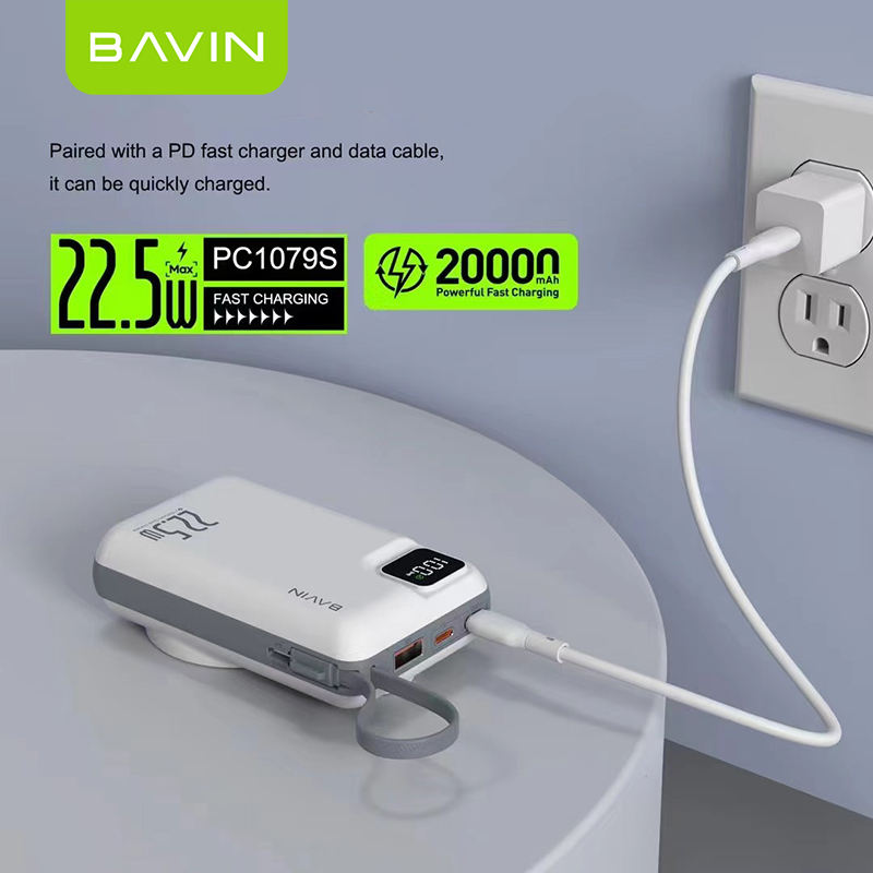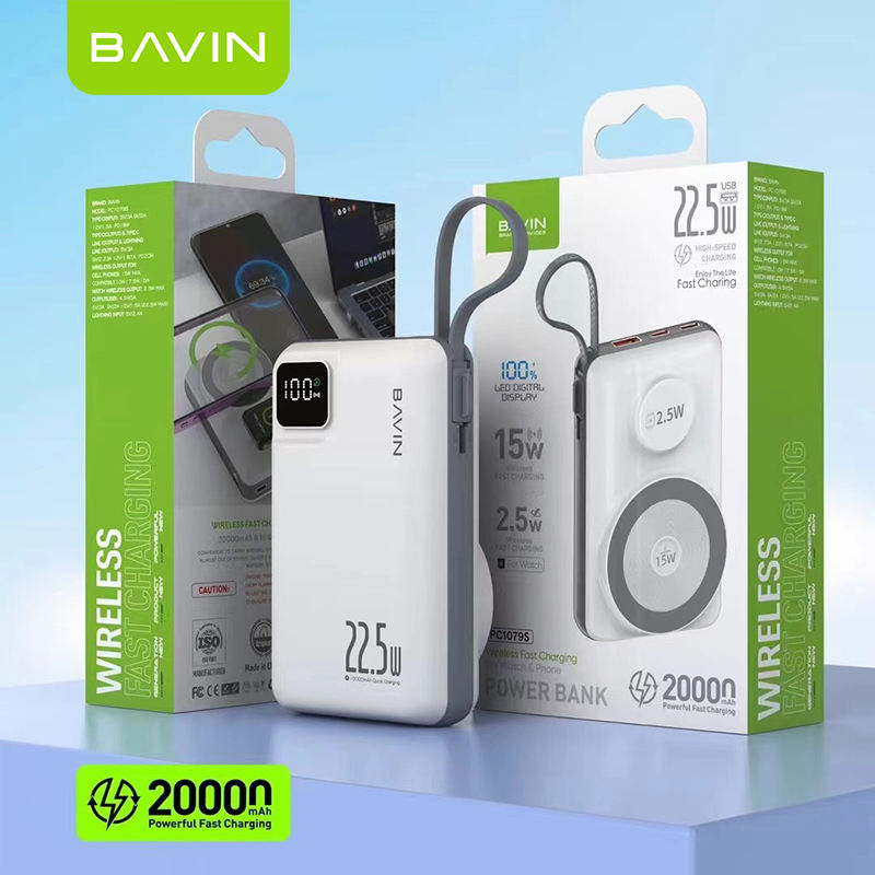 BAVIN PC1079S Portable Wireless Fast Charging 20000mah Power Bank Charger With LED Led Display and Type c Cable