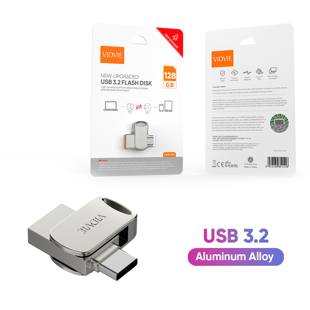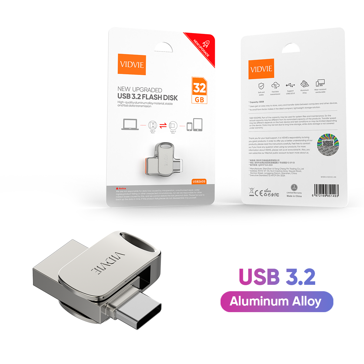 VIDVIE USB2605 Metal Type C 3.2 USB Memory Stick