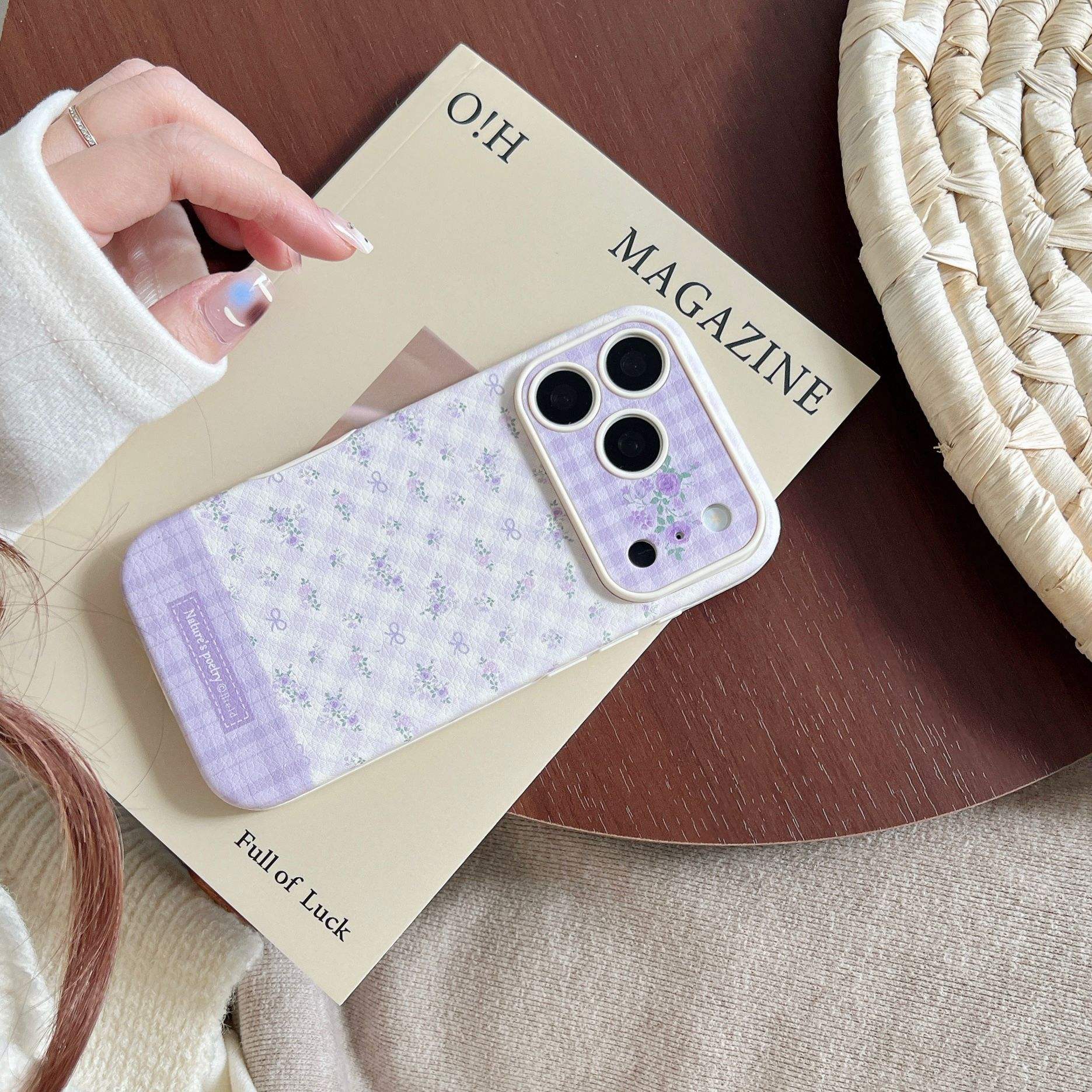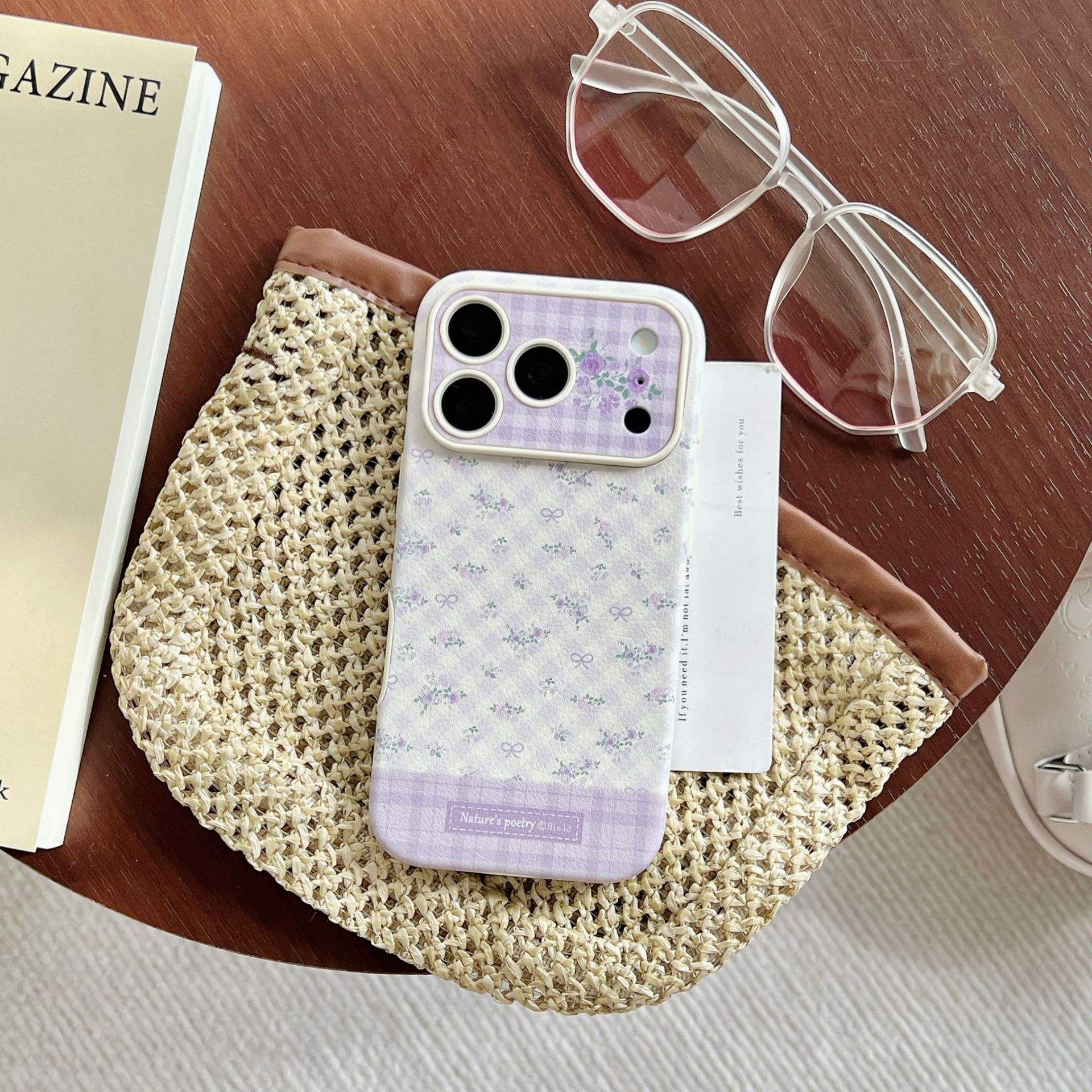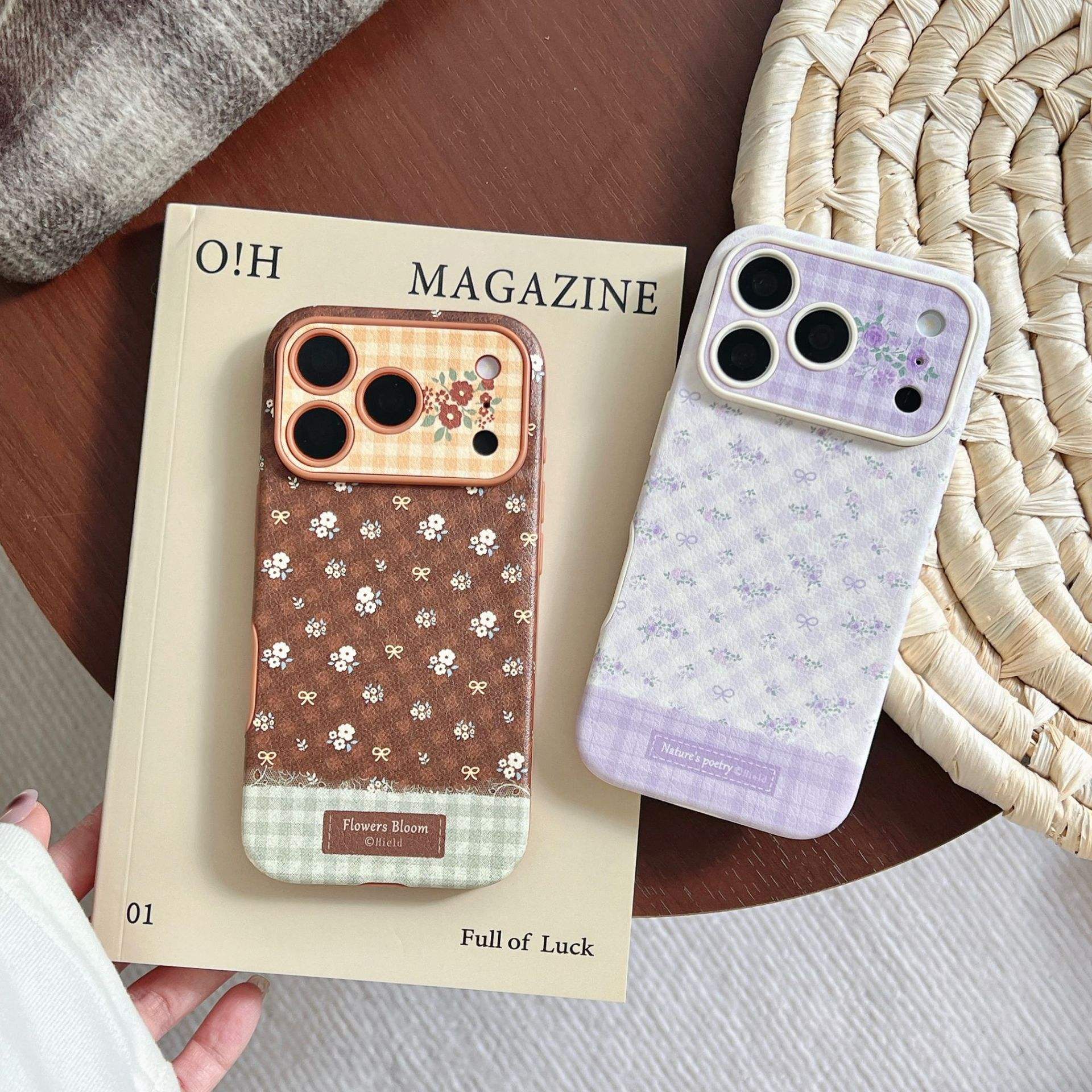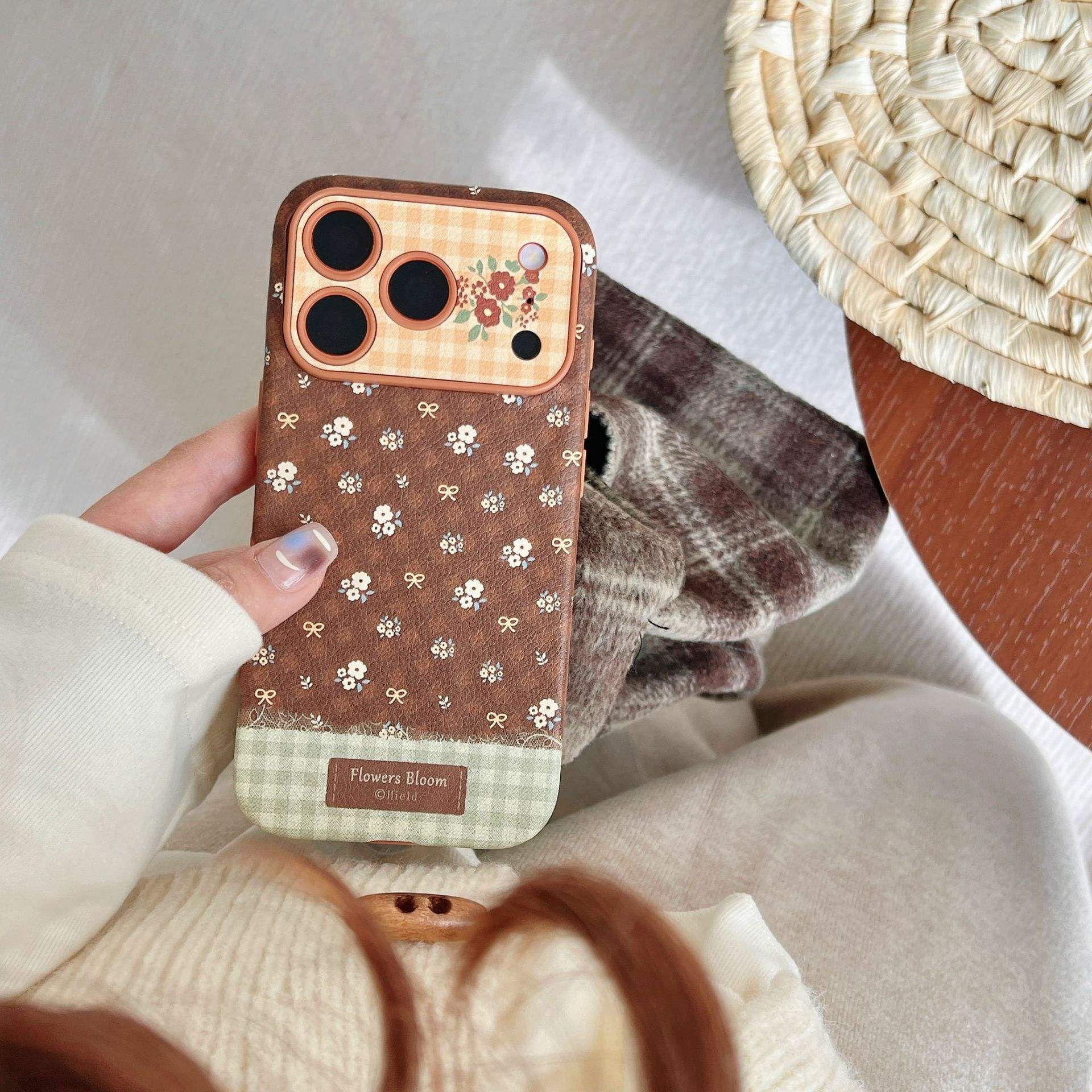 Korean-style Imitation Leather Polka Dot Small Floral Pattern Suitable for Apple 17 Promax Phone case iPhone 16 Cute 15_14 Pro