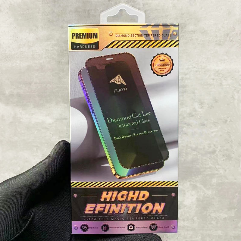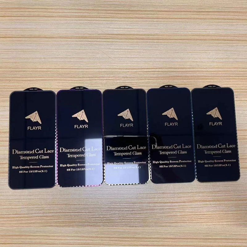 Hot Sell Full Cover Diamond Cut Lace Tempered Glass Screen Protector for iPhone X XR 11 12 13 14 Pro Max Film