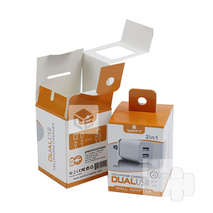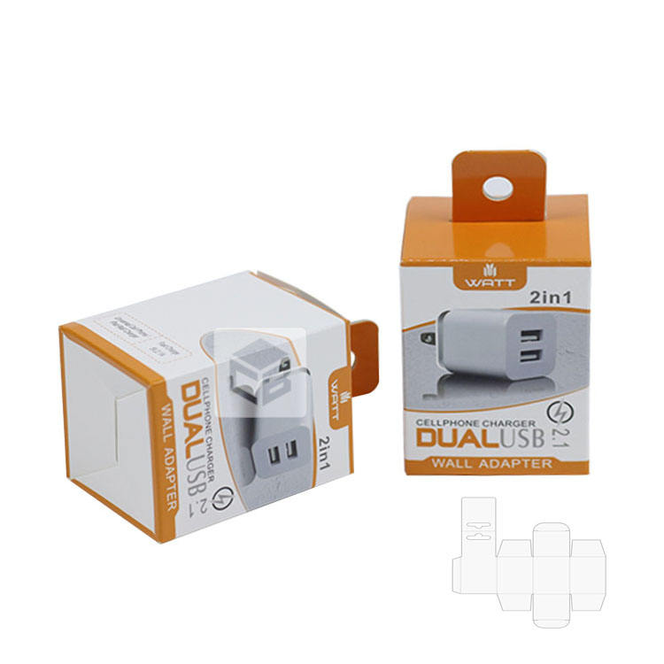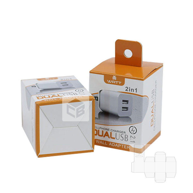 Chengbao 008 Electronics Product Packaging Cardboard Boxes Wall Adapter Packaging Paper Hanging Box with Tuck-In Flap for Plug C
