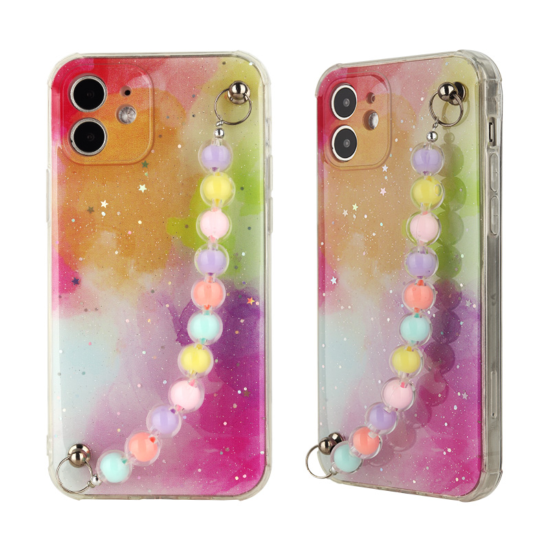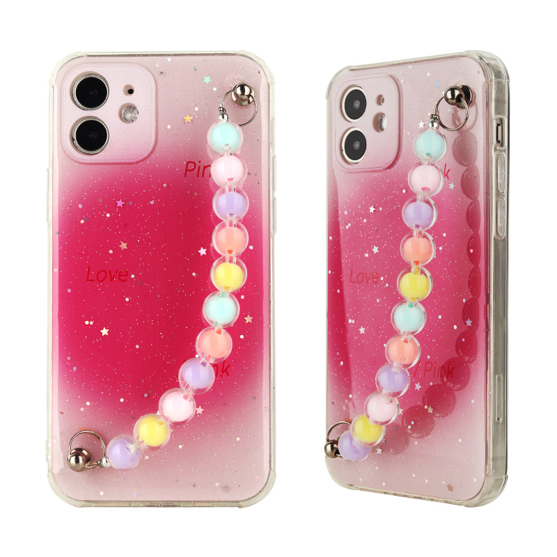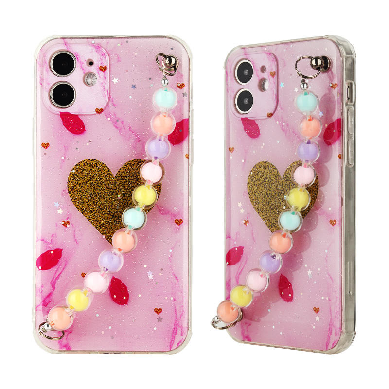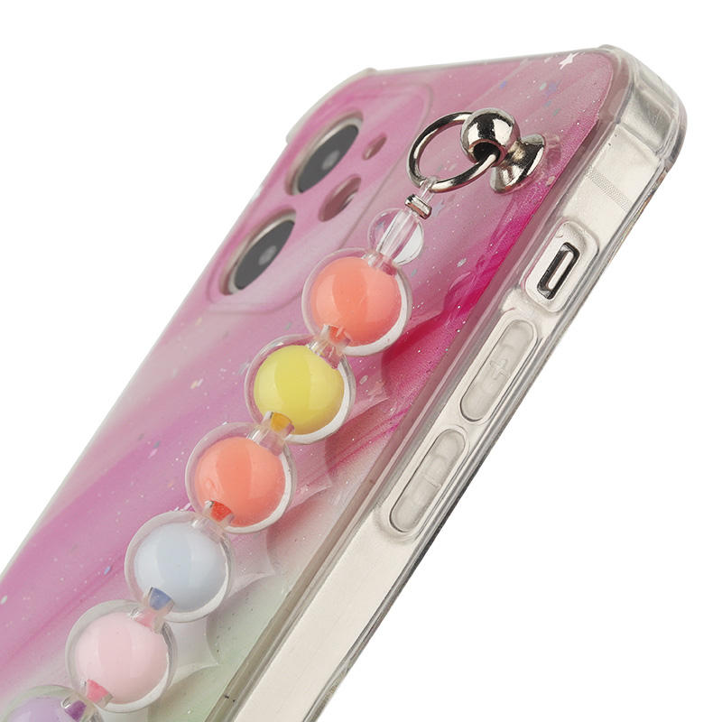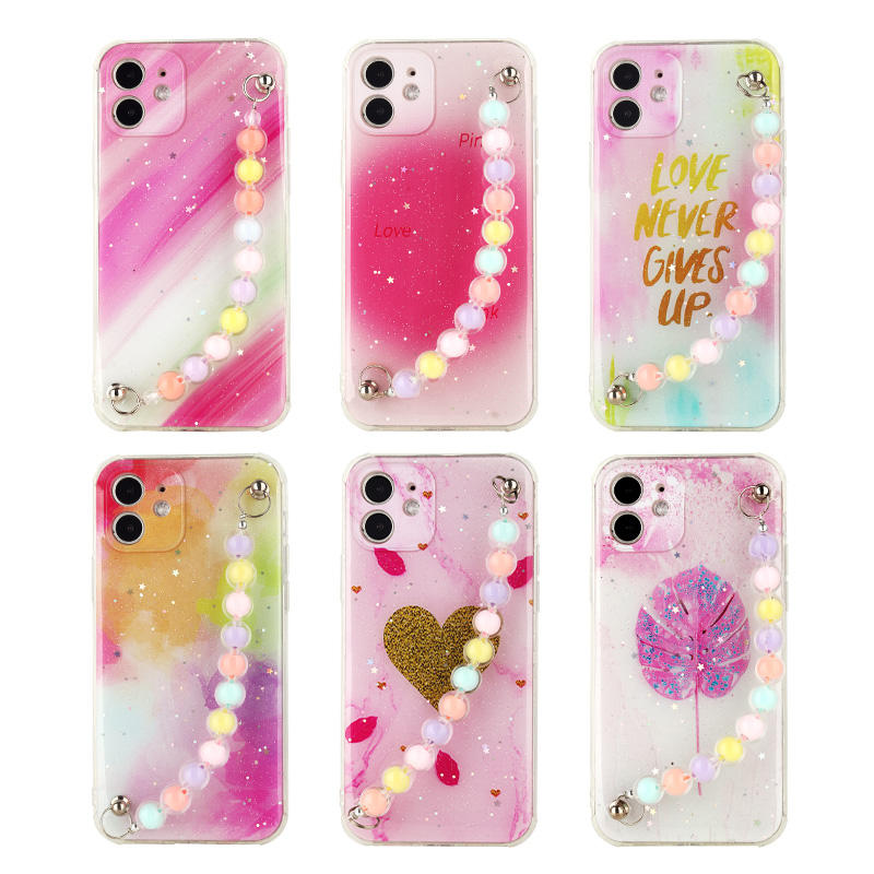 Custom Elegant Lady Pearl Chain TPU+Acrylic Phone Cases for iPhone 11 Soft Mobile Cell Phone Case With Strap