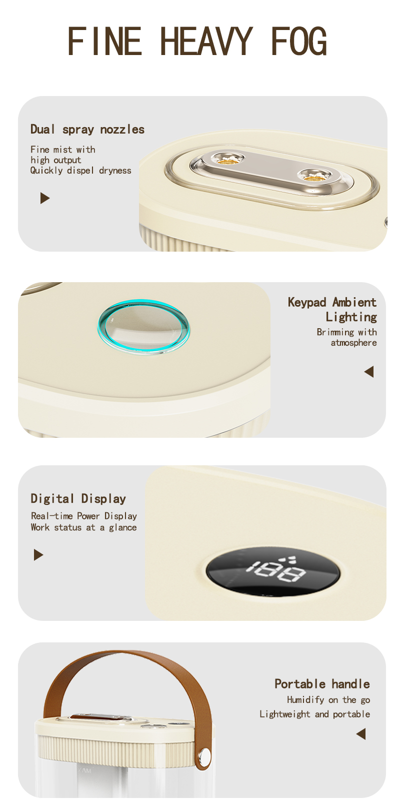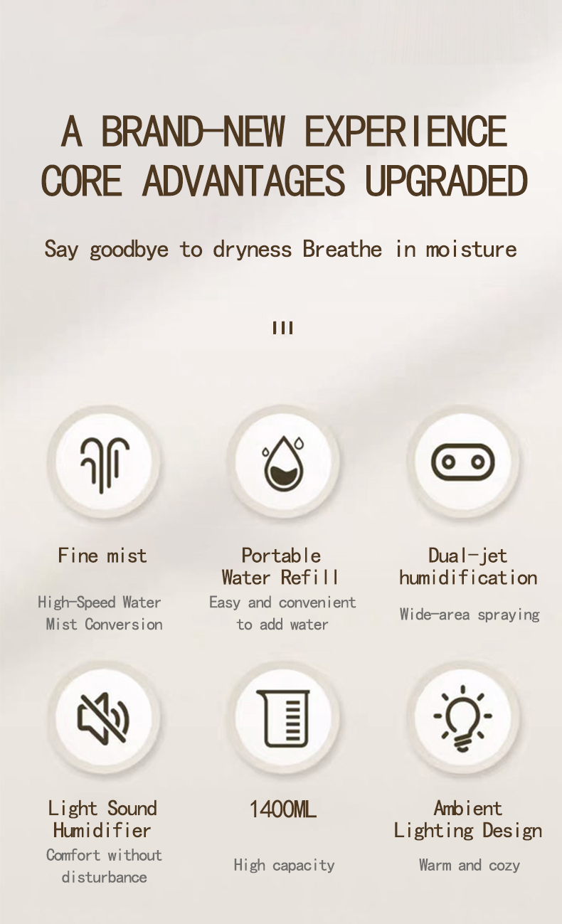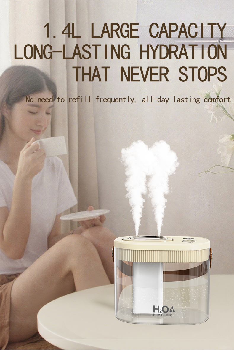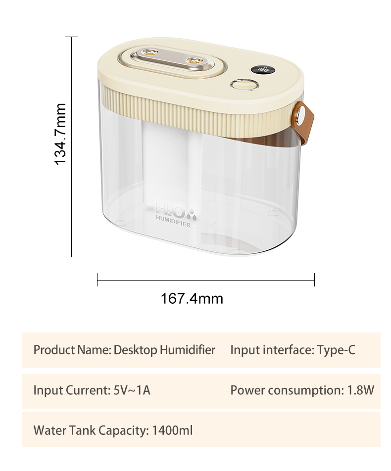 Modern 3 Mist Modes 1400ml Tank Digital Display USB Plug-in Cool Air Humidifiers with Night Light