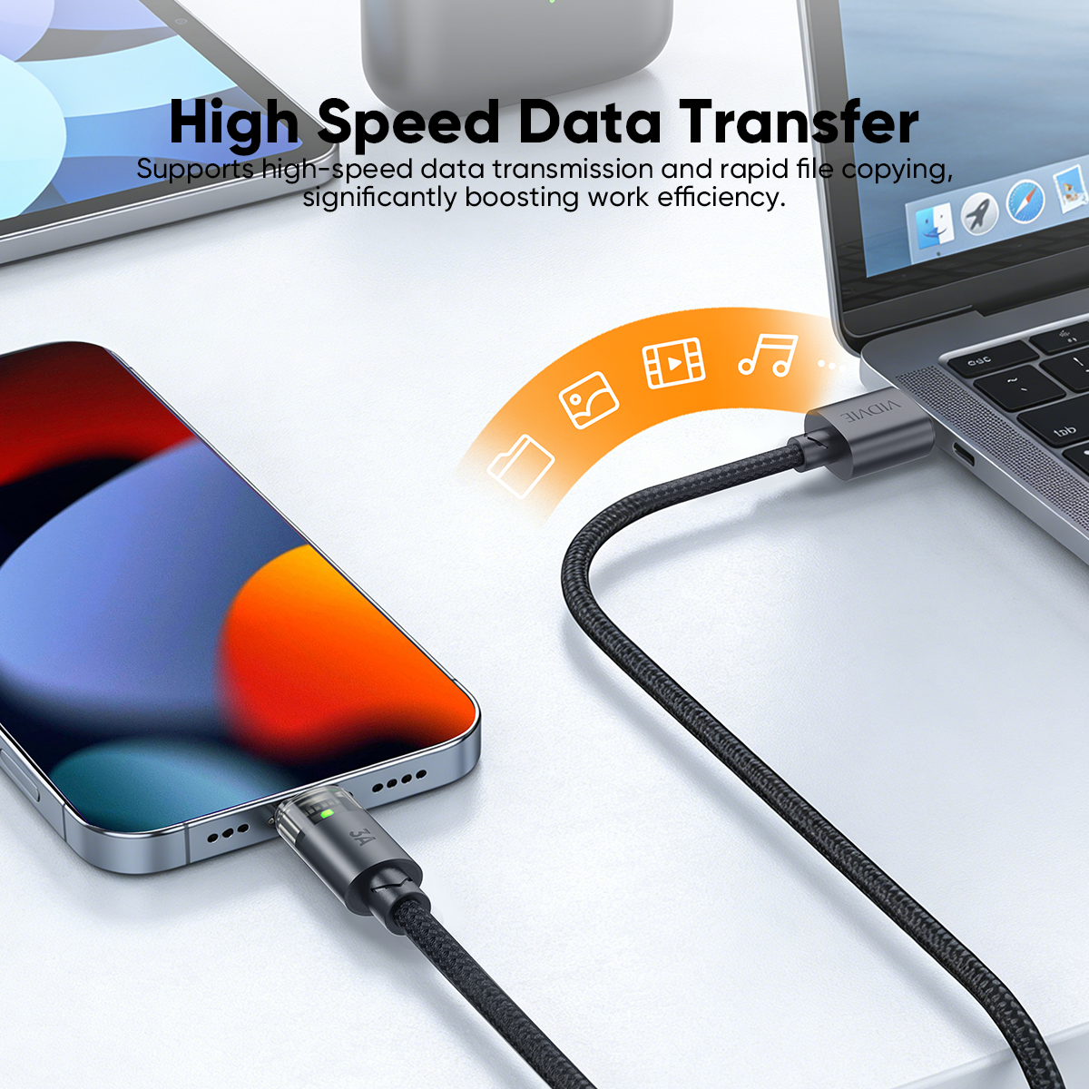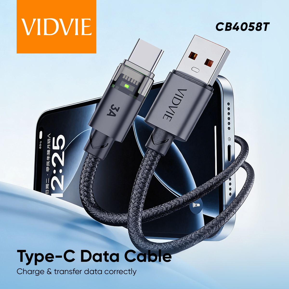 VIDVIE CB4058C 3A Type-C USB Data Cable