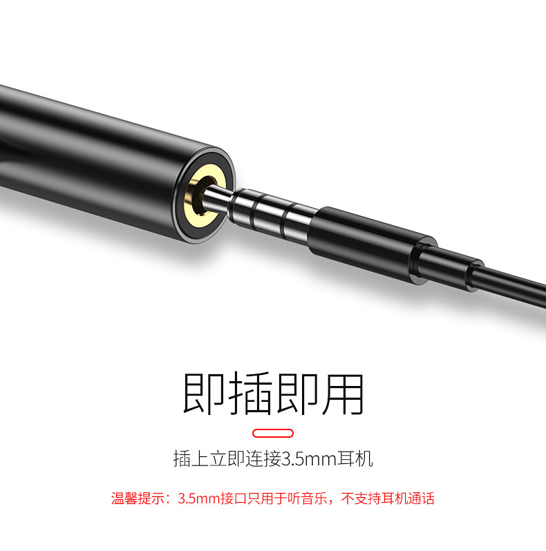 Product function: Charging and headphone listening to music (note: headphone voice calls are not supported)