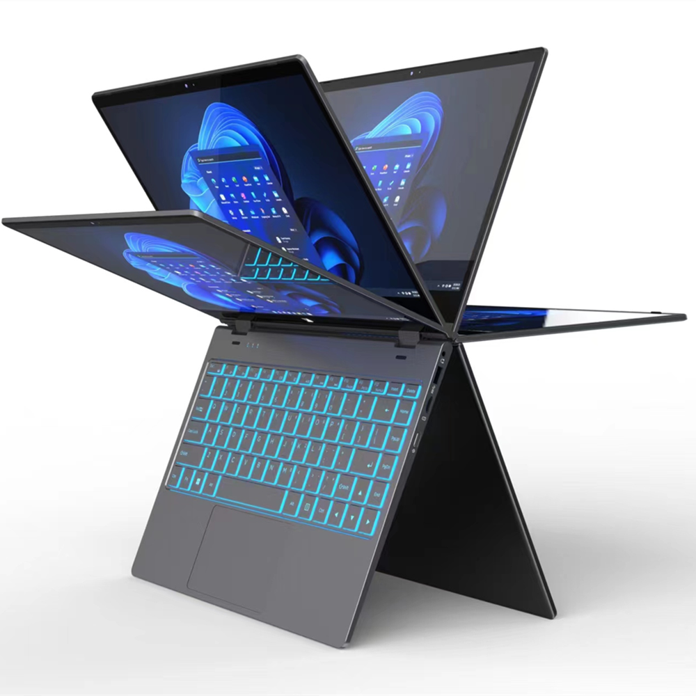 AIOPC New 14 Inch YOGA Mini PC N100 Laptop Intel Celeron CPU 8GB RAM+1TB SSD Touchscreen Notebook IPS Panel Metal Body English