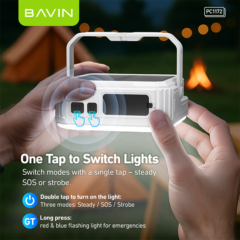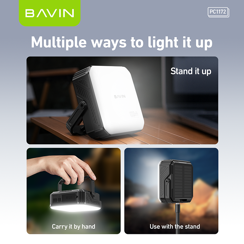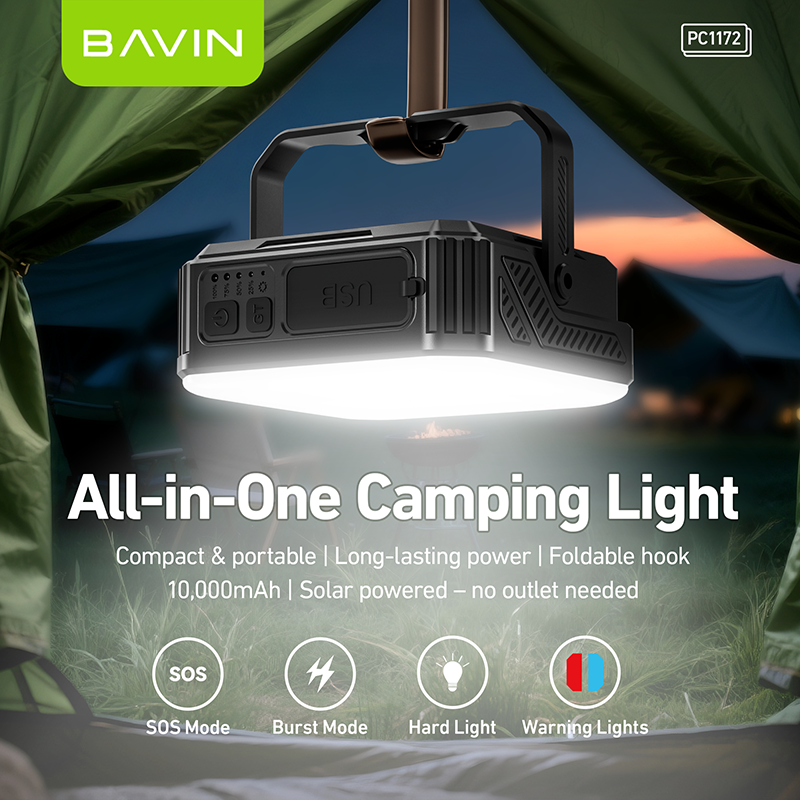 BAVIN Wholesale PC1172 10000mah Solar Light Panels Weatherproof Power Bank Wirh Led Light