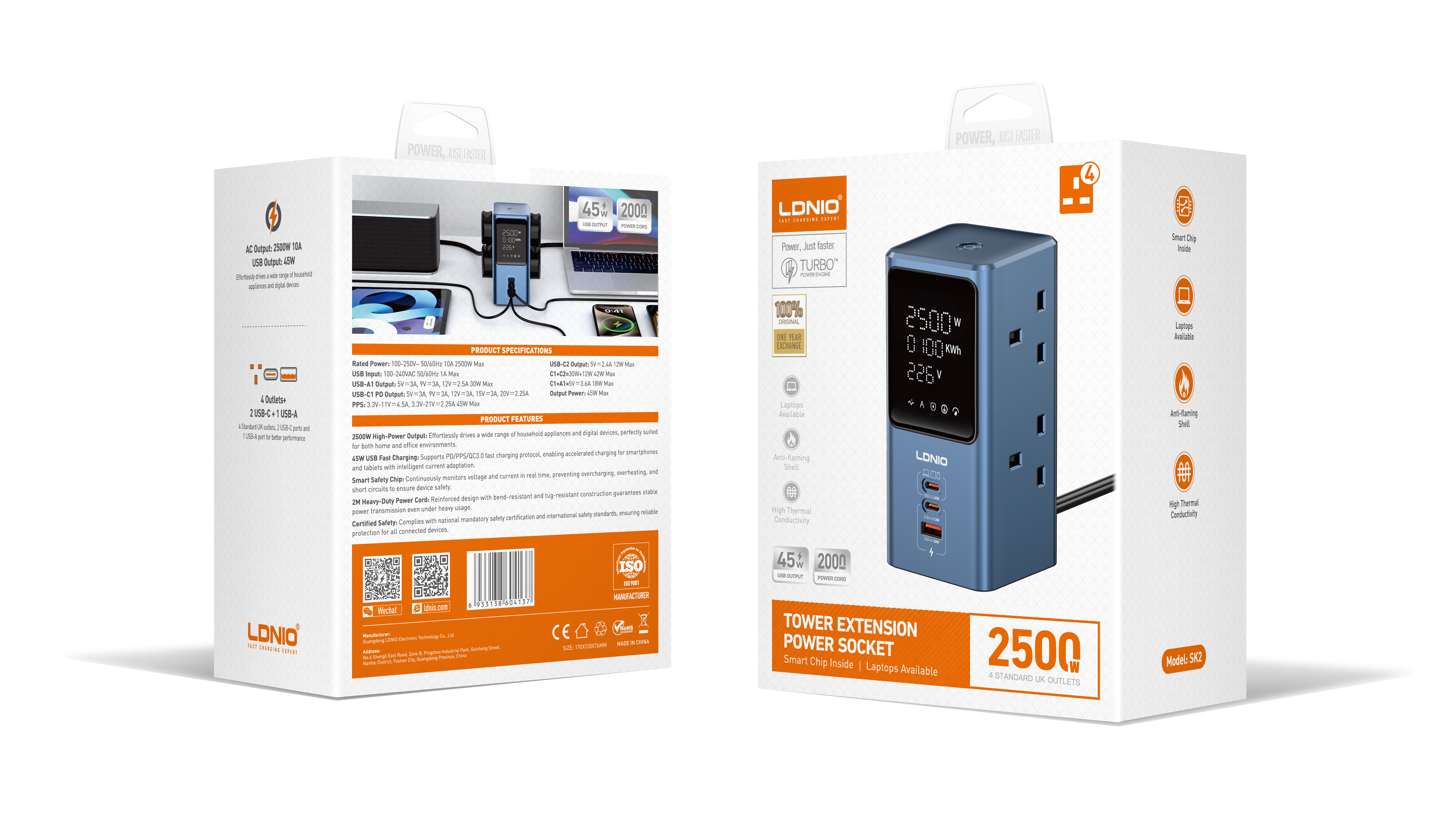 LDNIO--Power Strip--SK2 7-In-1 Ports GaN45W Desktop Tower Station