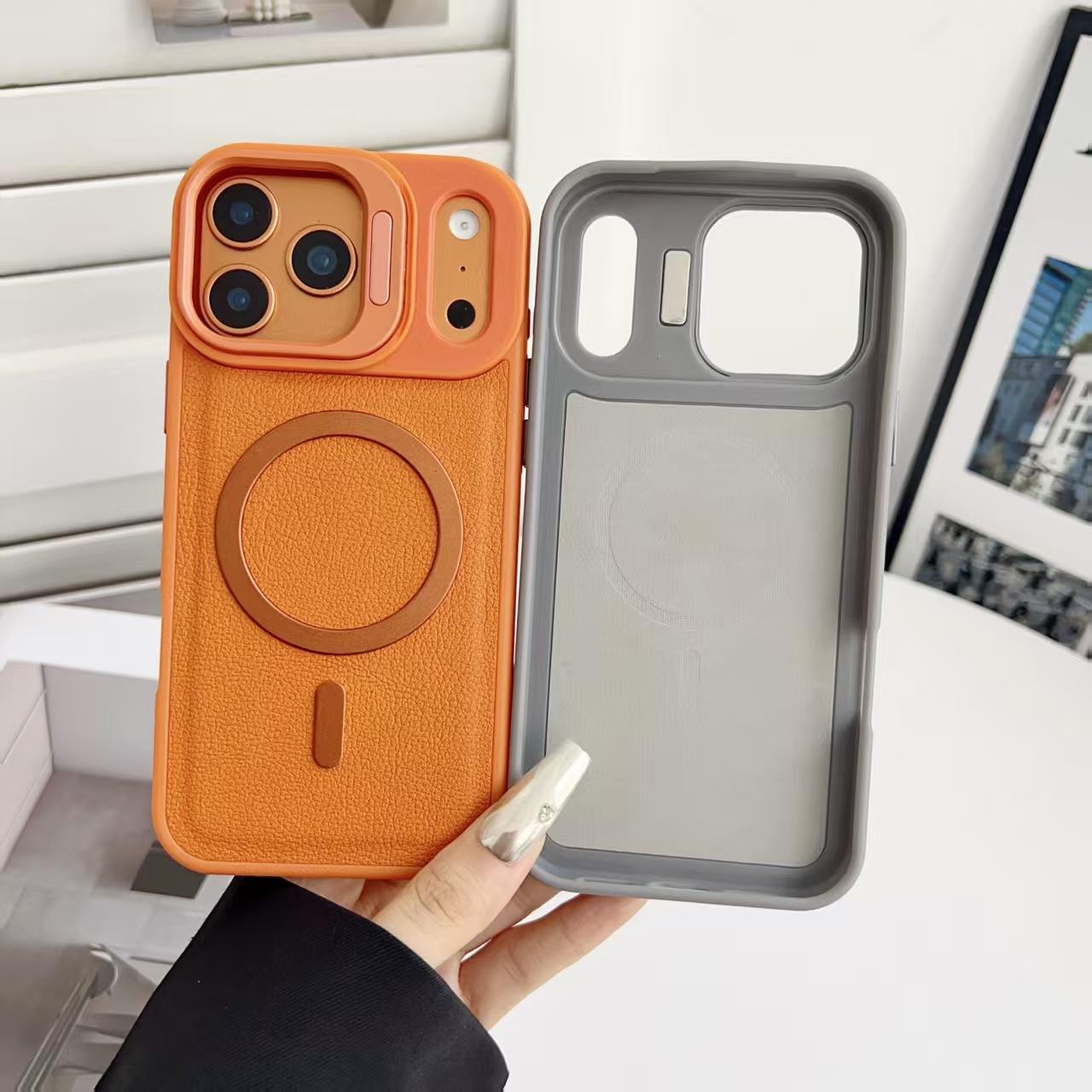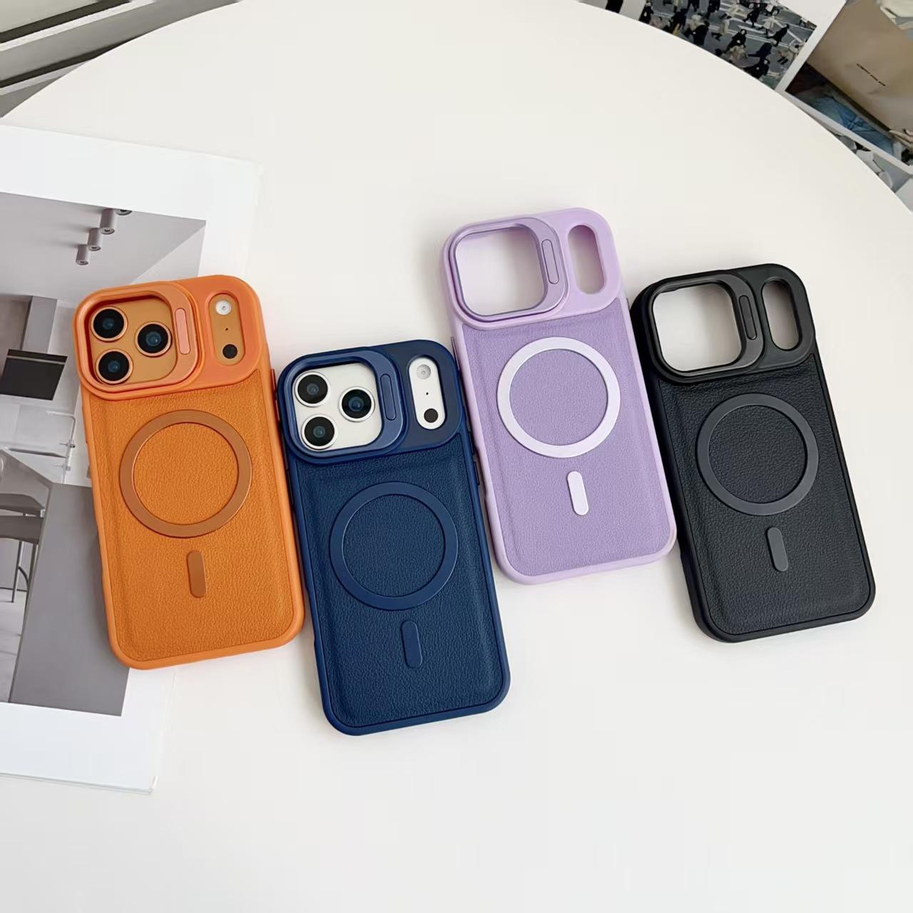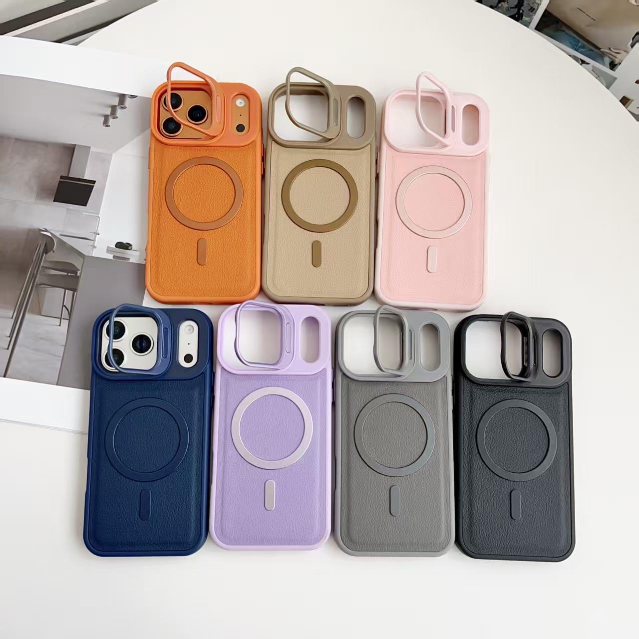 Leather Lychee Pattern Magnetic Phone Cases for iPhone 17 Air 16 Pro Max 15 14 Plus 13 12 Camera Lens Kickstand Shockproof Cover