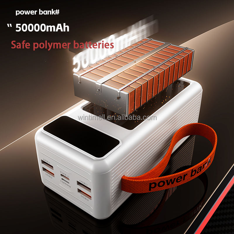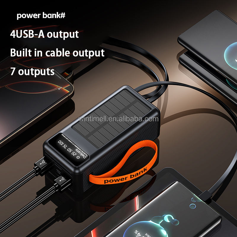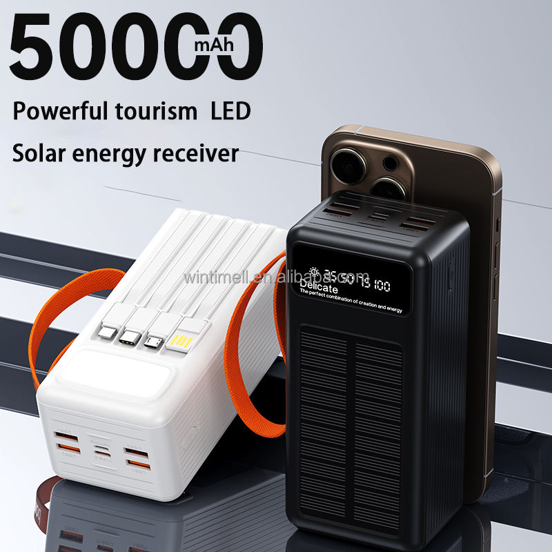 New Large Capacity Solar Power Bank 50000mAh Built-in 4 Cables Battery Charger 50000 Mah Wires Powerbank With 4 LED Light