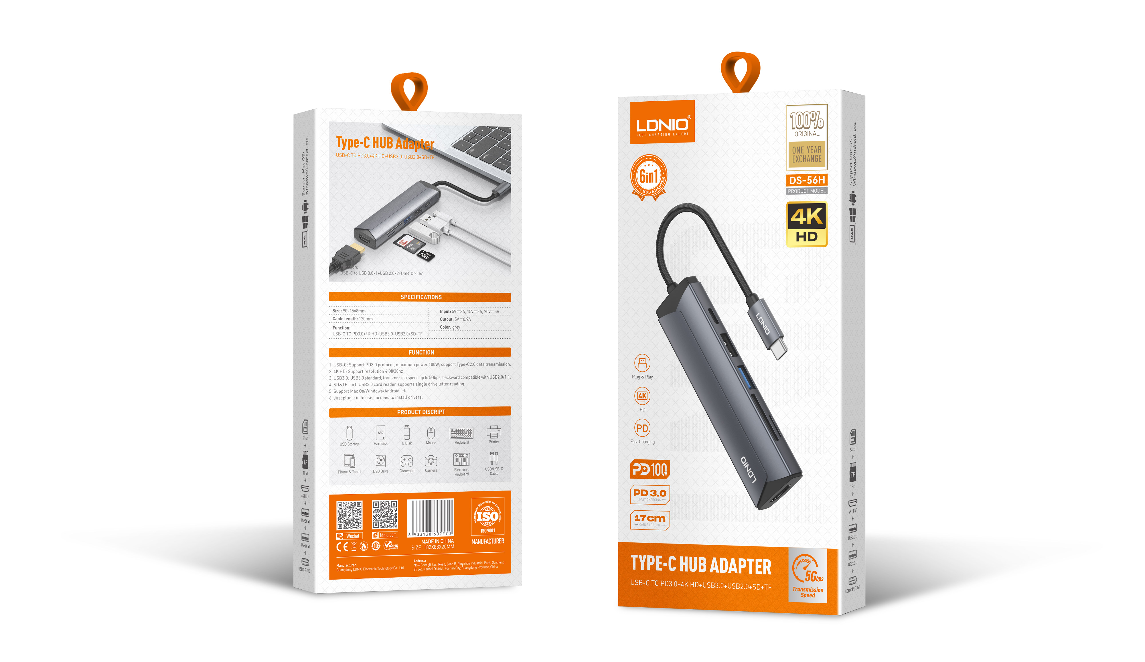 DS-56H "PD100W USB-C Multi-function Docking Station Type-C To PD3.0*1+HDMI*1+USB2.0*1+SD+TF"