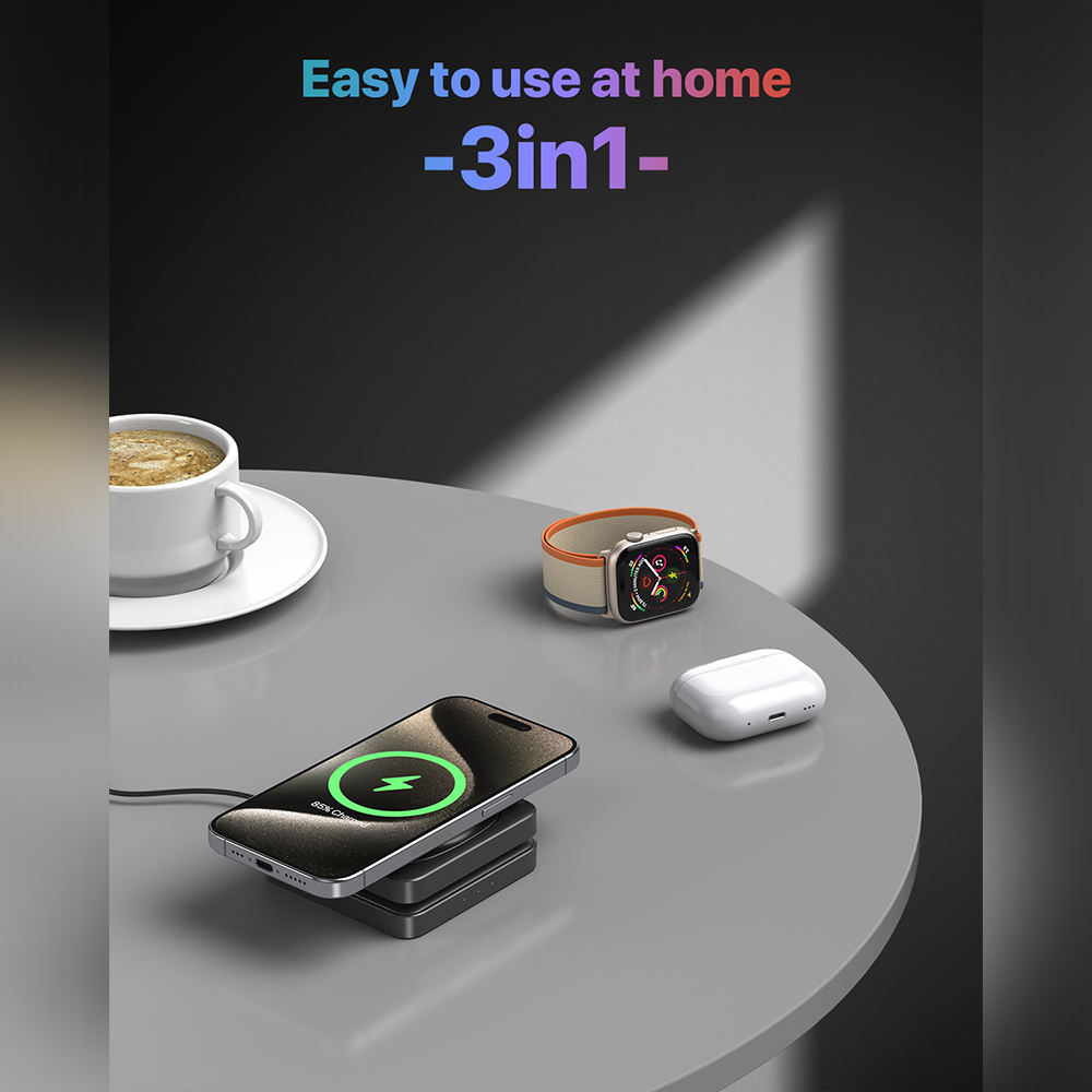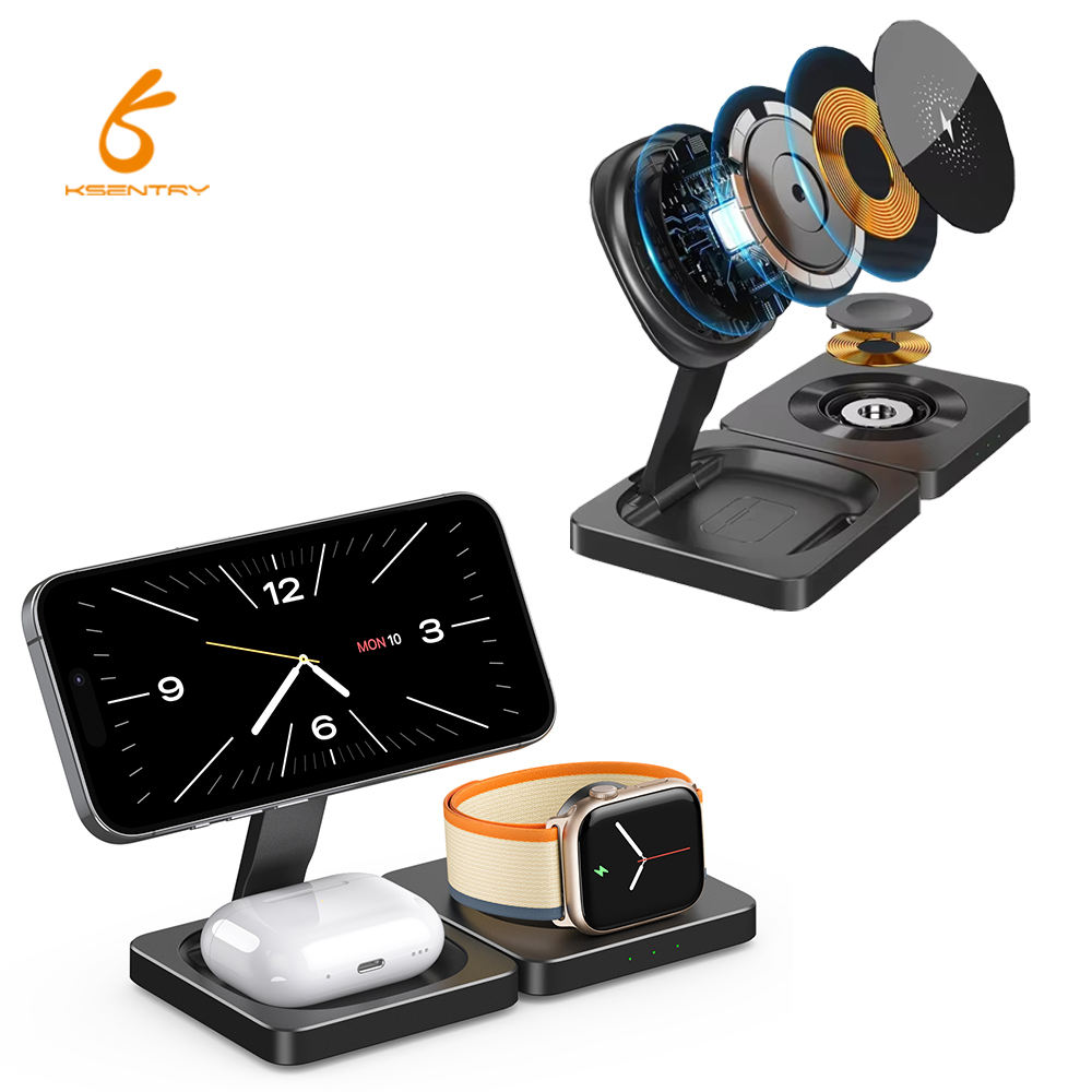 KSENTRY collapsible 3 in 1 Wireless Foldable Folding Desktop Desk Phone Charging Stand Holders Station Magnetic Portable Charger