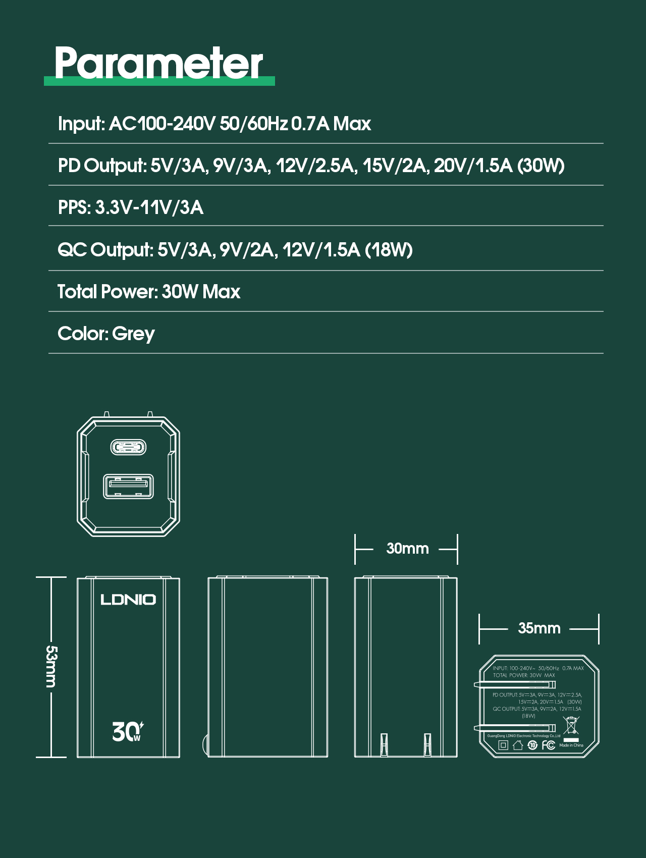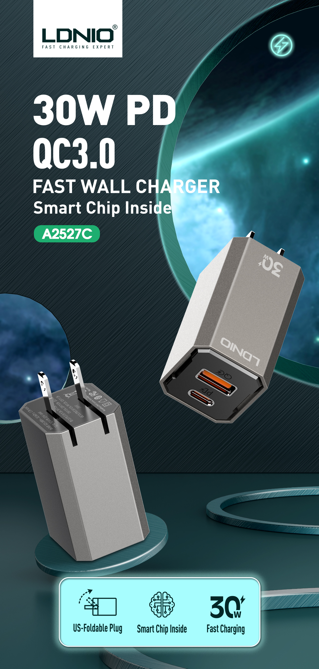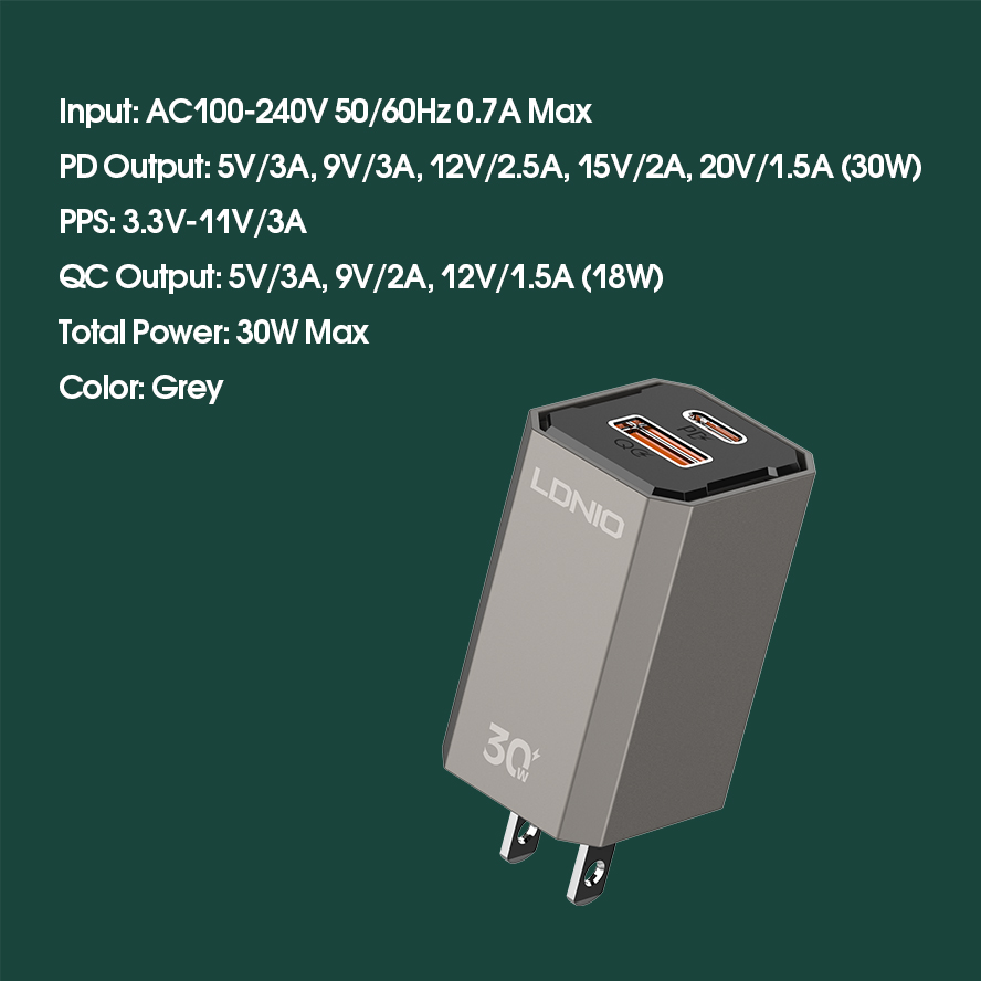 LDNIO--Charger--A2527C "30W PD Charger Support PD3.0,PPS,QC3.0"
