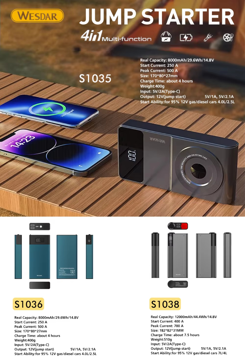 New Arrival 8000mAh Portable Power Bank Digital Display Multi-functional Type-C Fast Charging Jump Starter 10W_12W Output Power