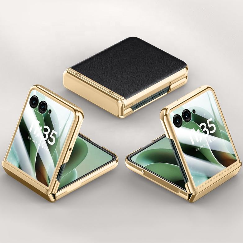 High Quality Anti-Drop Transparent Case for Moto Razr 50 Ultra 60 Ultra PU Leather Electroplating Shockproof Mobile Phone Case