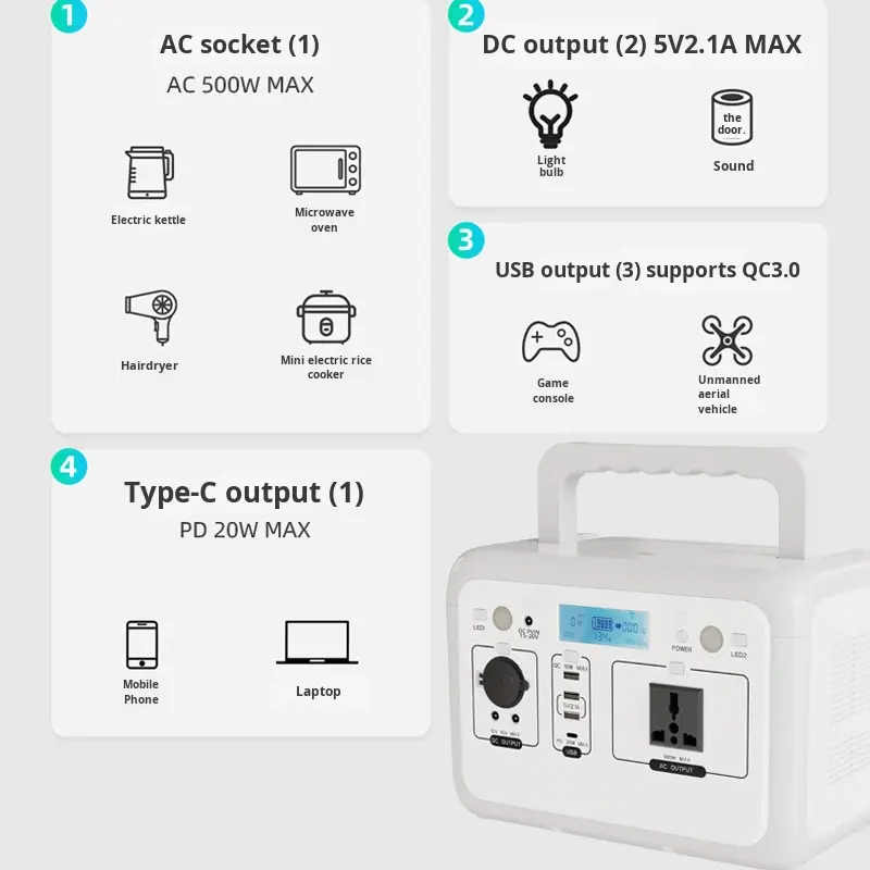 TLEAGLE--500W Pure Sine Wave Lithium Ion Energy Storage Power Supply Camping Self-driving Tour Portable 220V 110V Outdoor