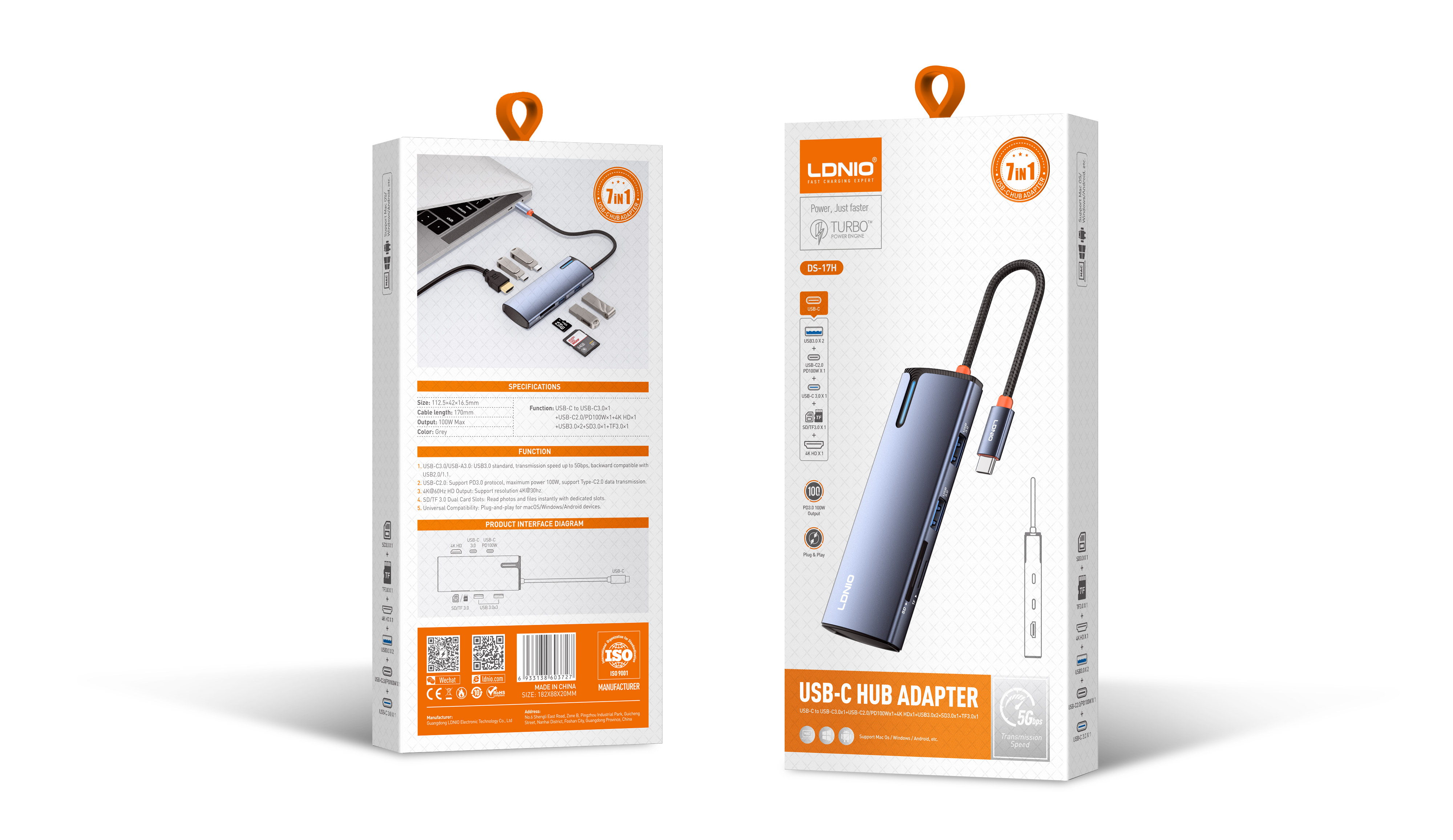 DS-17H Type-C to USB-C3.0*1+USB-C2.0/PD100W*1+HDMI*1+USB3.0*2+SD3.0*1+TF3.0*1