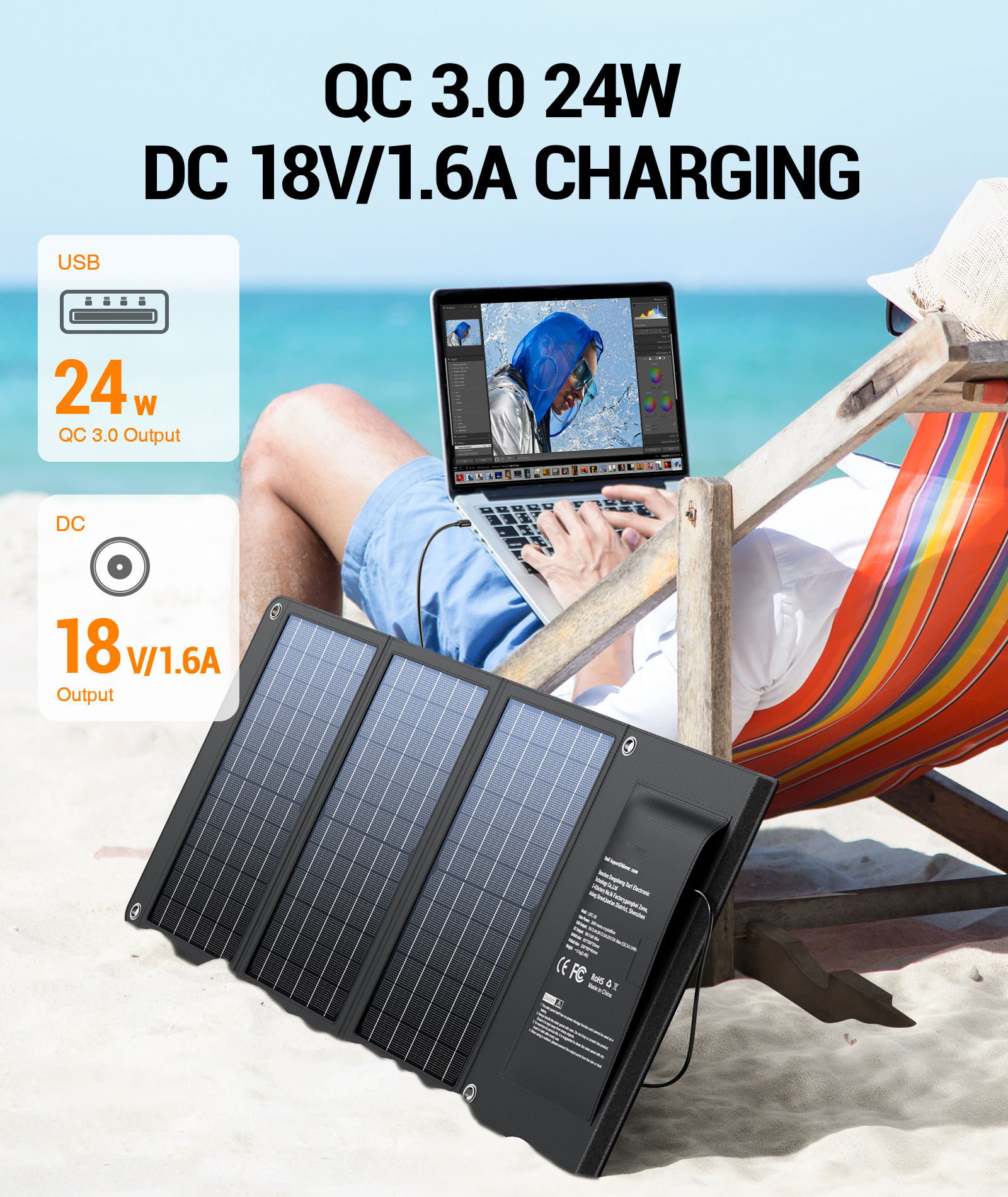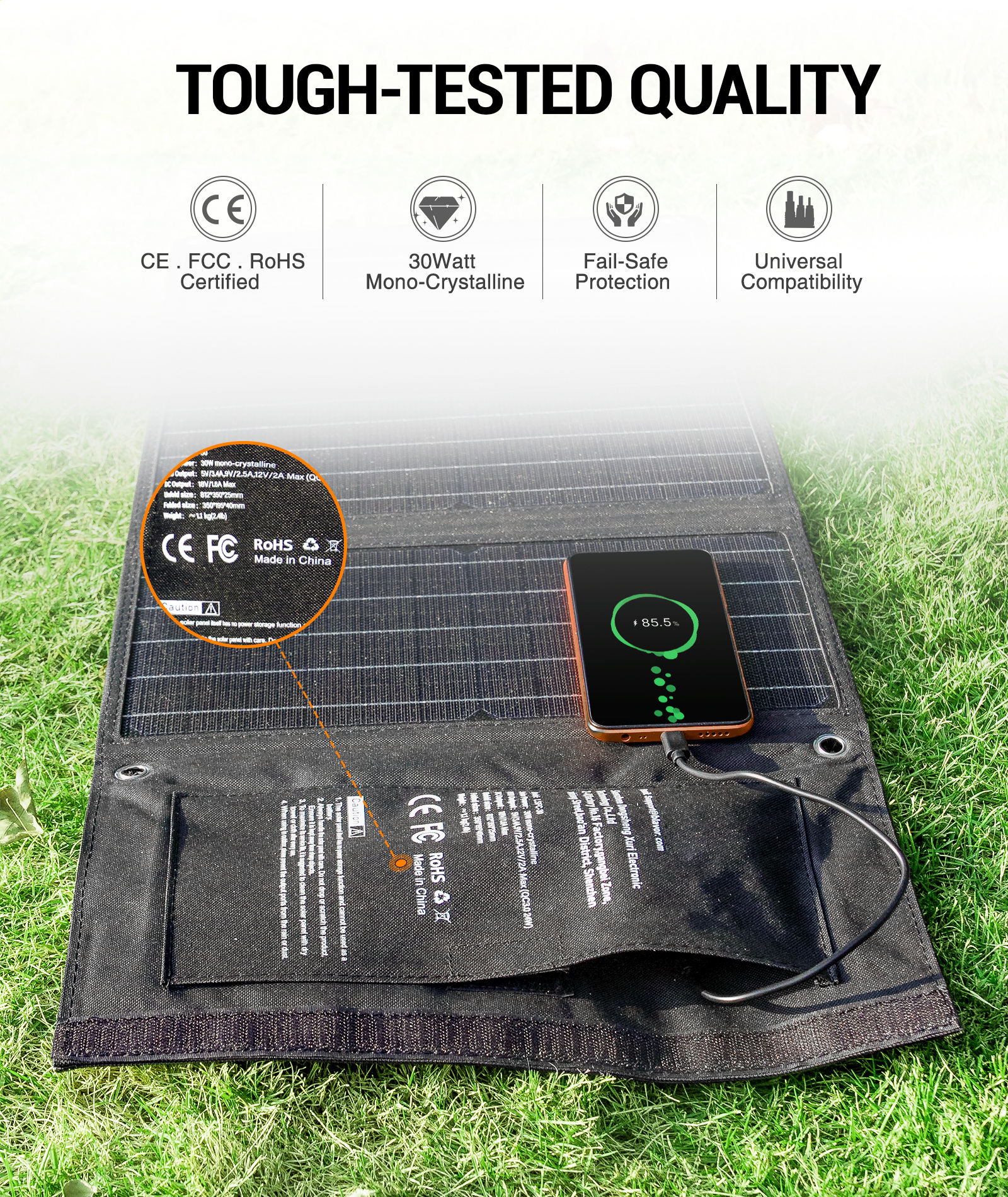 BLAVOR 30W Solar Charger USB-A QC3.0_USB-C 24W Foldable IPX4 Waterproof Black Camping Solar Panel Battery Charger