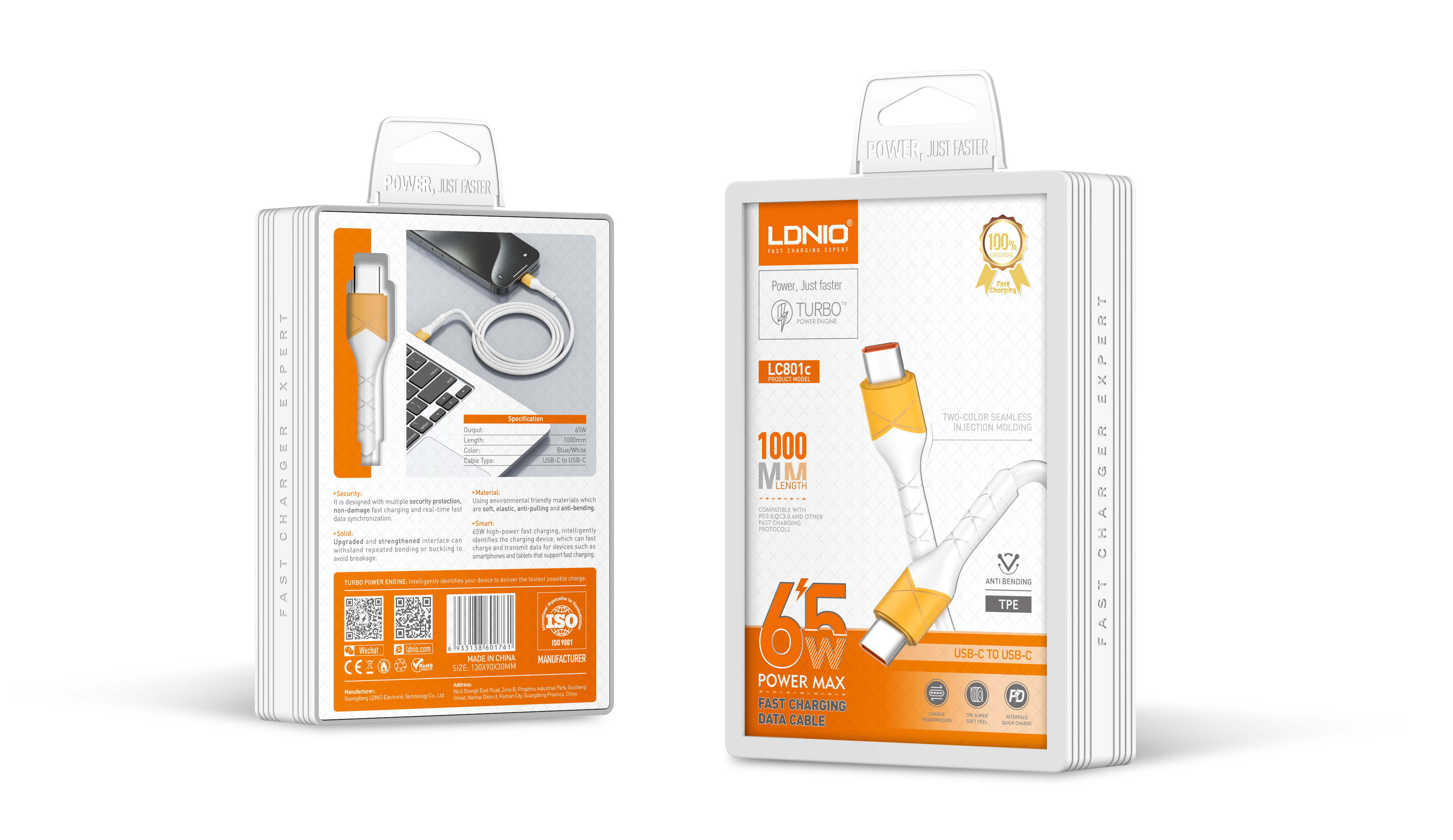 LC802c " length :2m 65W Type-C to Type-C Cable Support PD and QC fast charging"