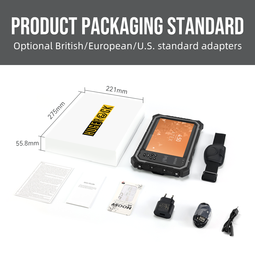 HUGEROCK T80EX Factory 8" 1000nit 18900mAh ATEX Nfc Modules Long Range UHF Rfid Reader Explosion-proof Rugged Tablet With Rfid