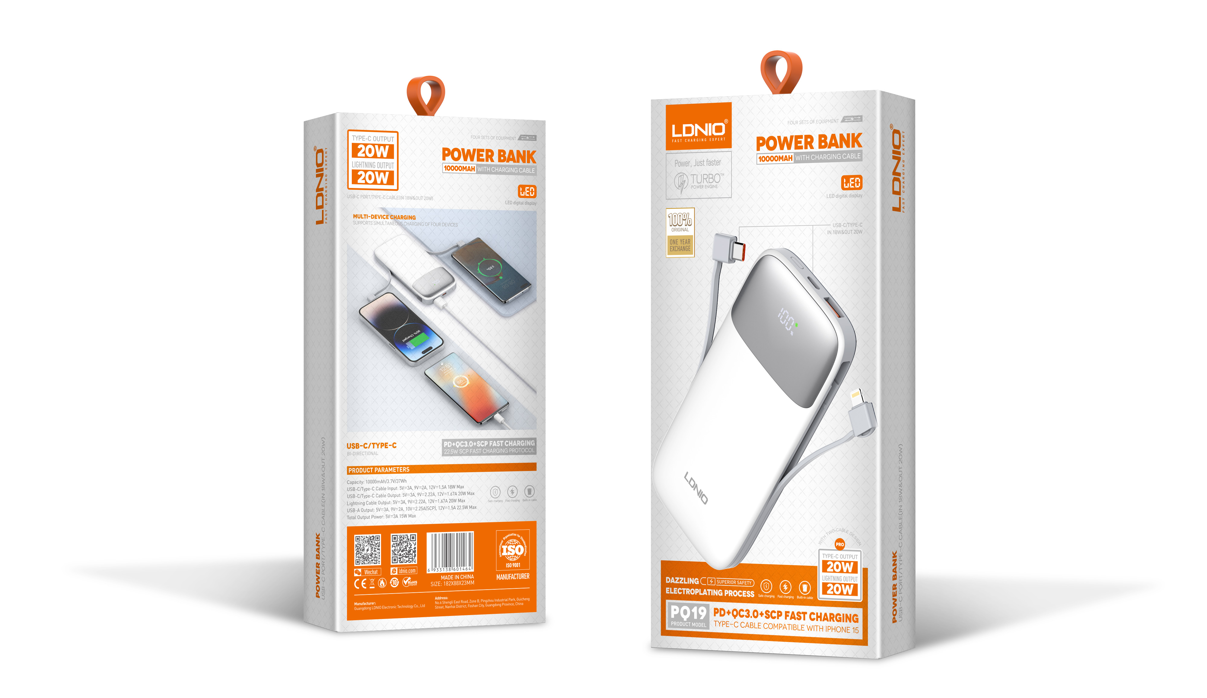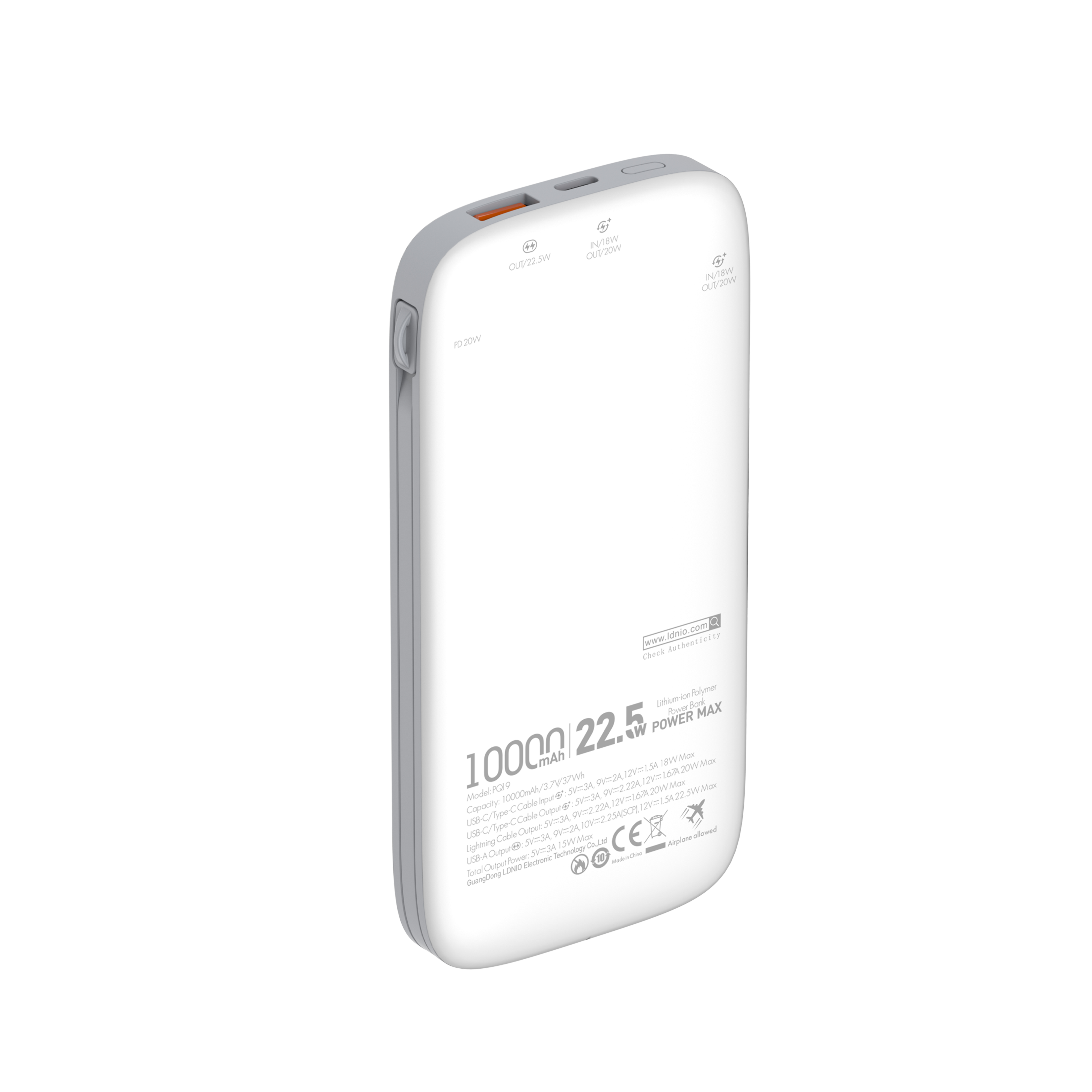 LDNIO--Powerbank--PQ19 "10000mah/37WH TC:22.5W/SCP +Lightning:PD 20W Total Power: 22.5W Max"