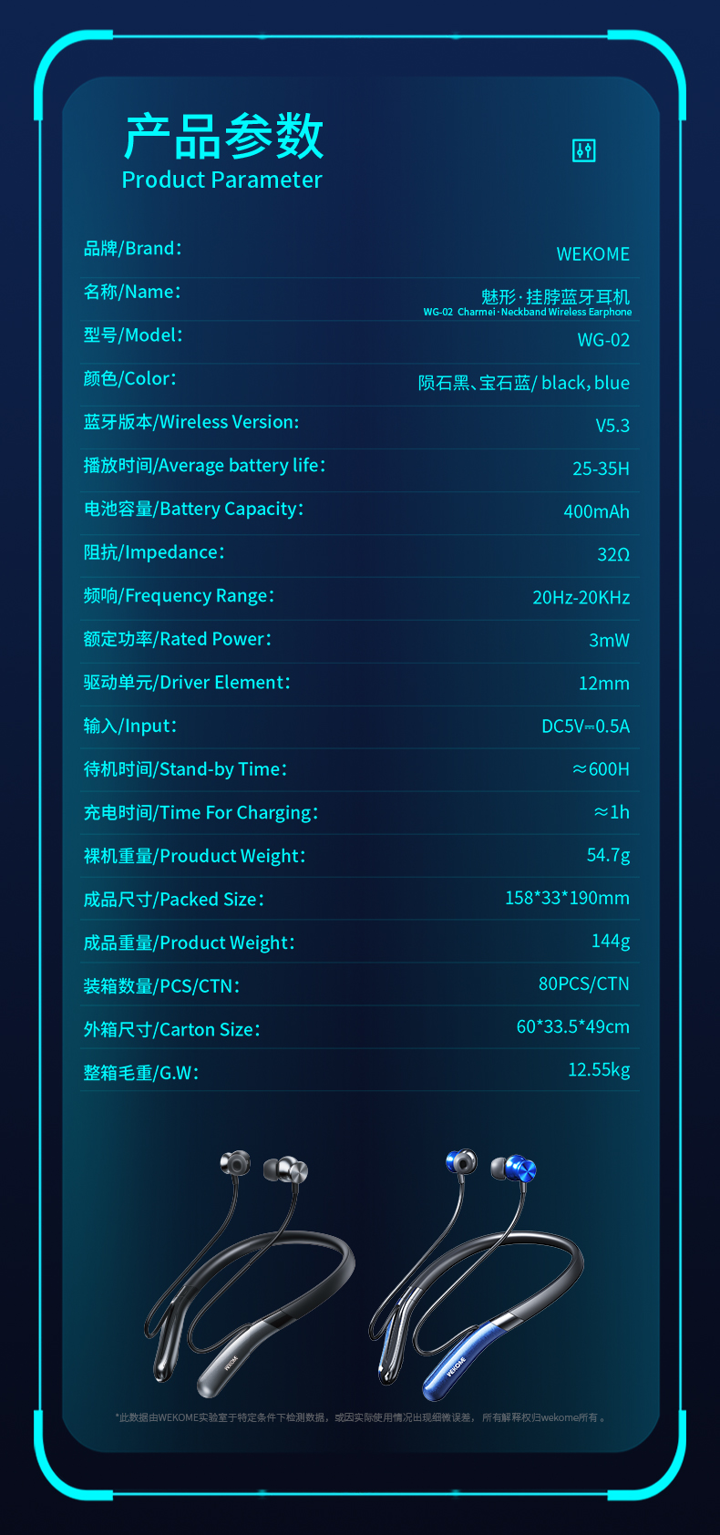 WG-02 Neckband Wireless Earphone-wekome earphone