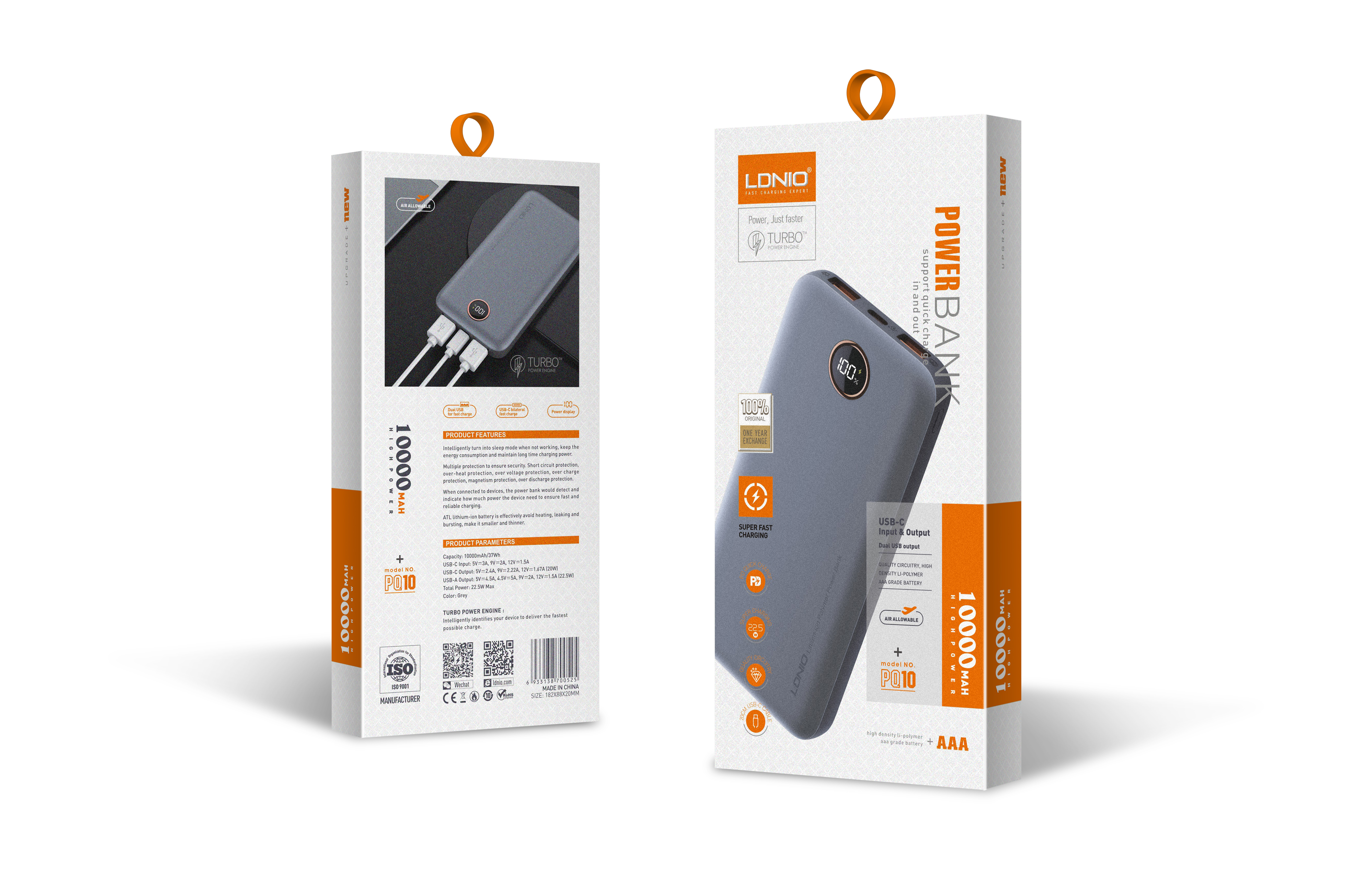 LDNIO--Powerbank--PQ10 "22.5W Powerbank 10000mah/37Wh Total Power:22.5W"