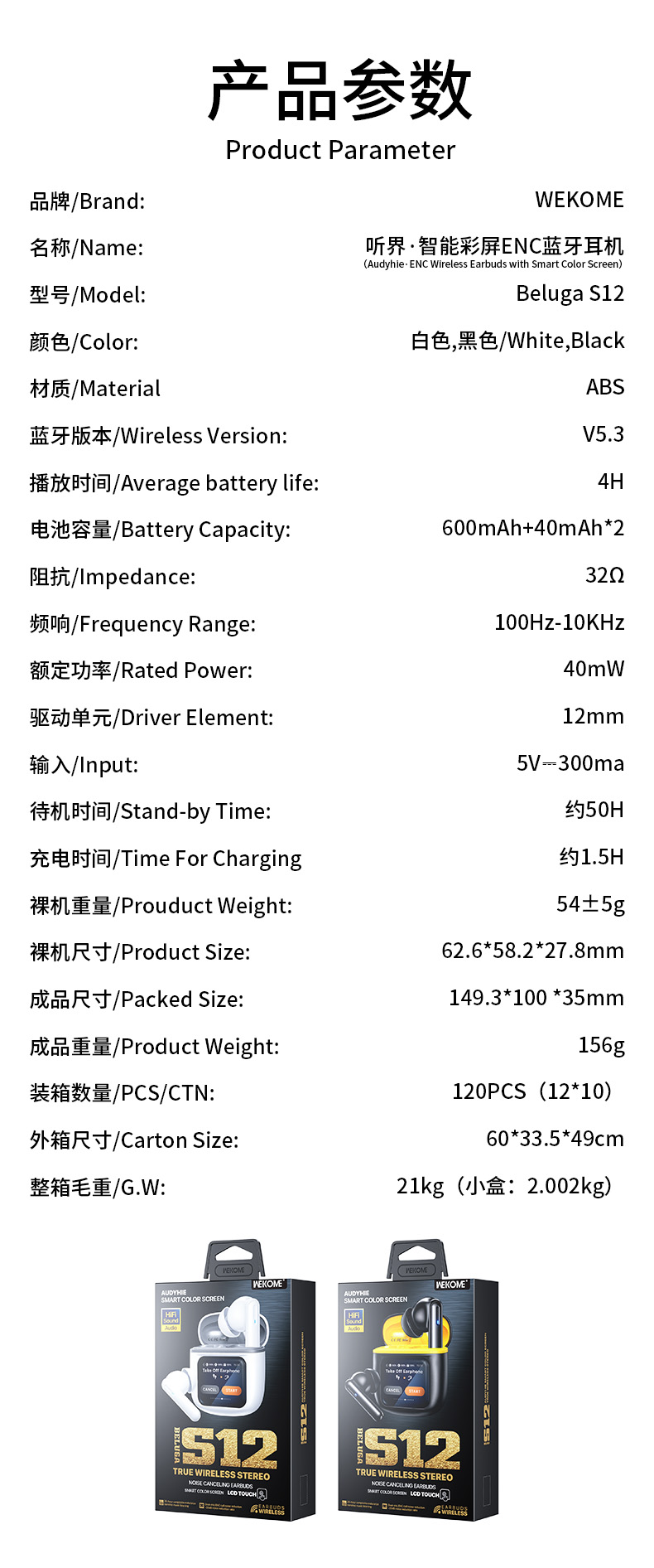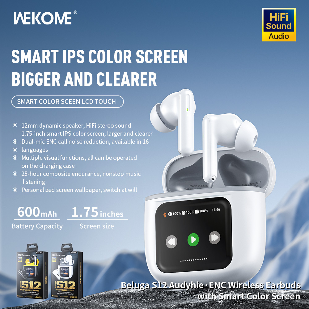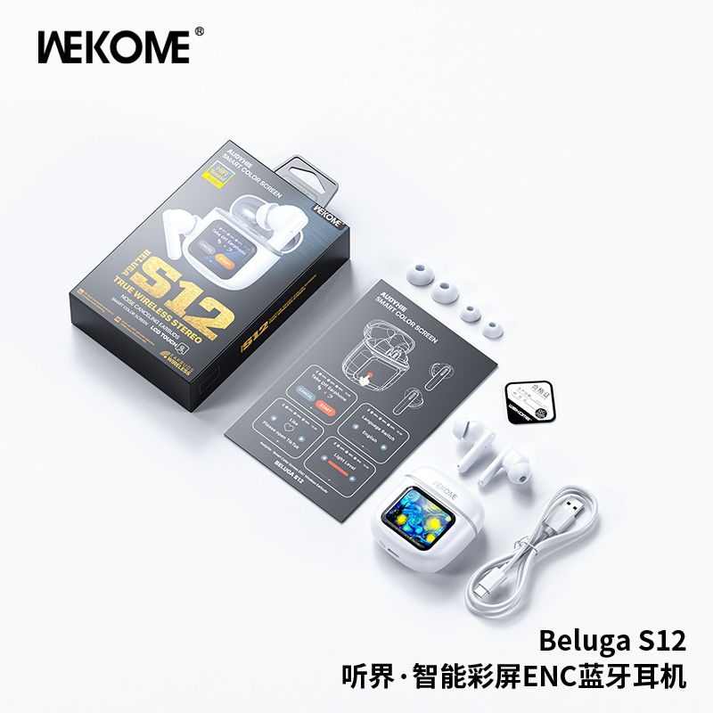 Beluga S12 Audyhie· ENC Wireless Earbuds With Smart Color Screen wekome