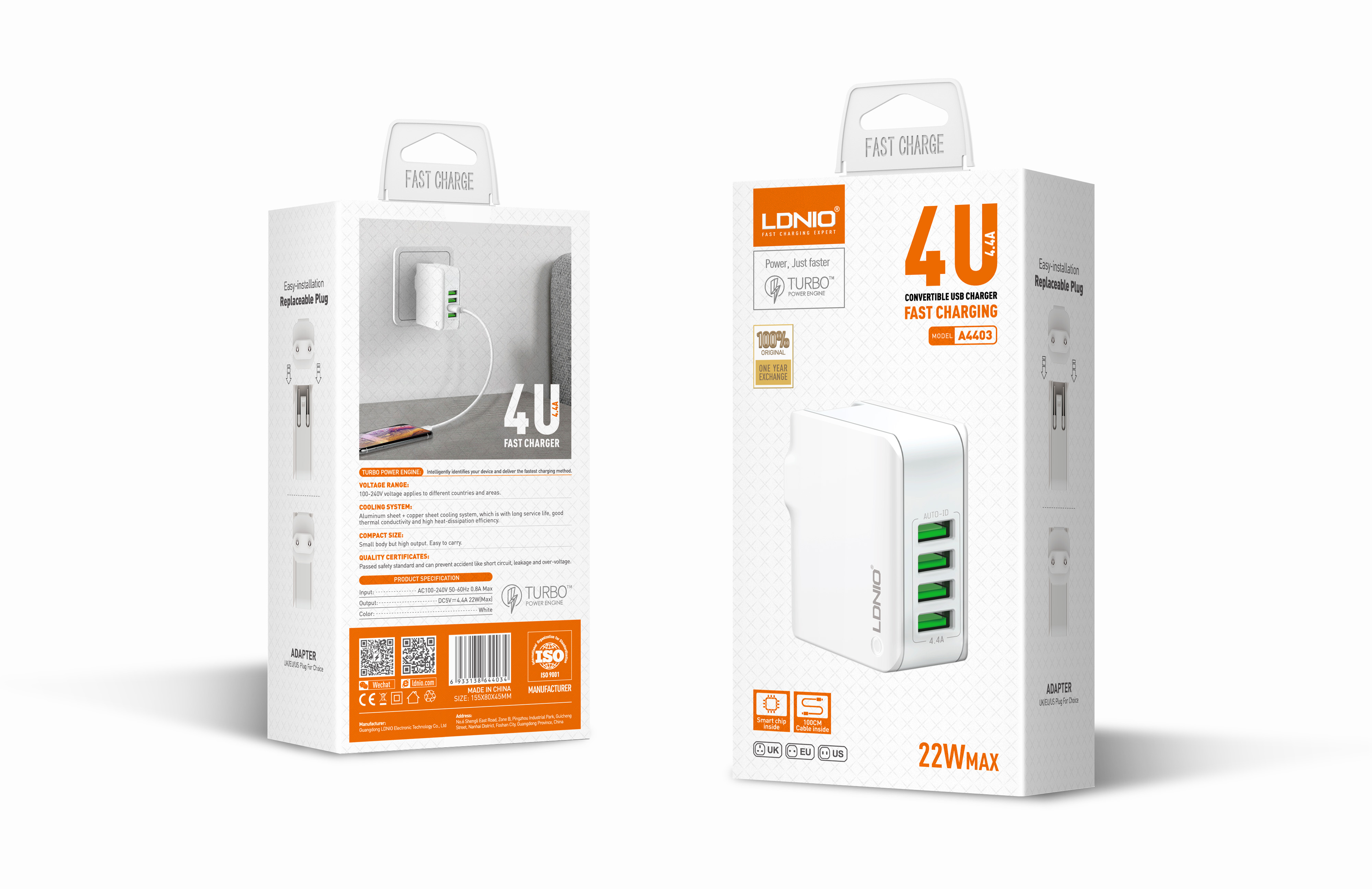 A4403 UK/Euro/US plug 4USB Ports Without cable