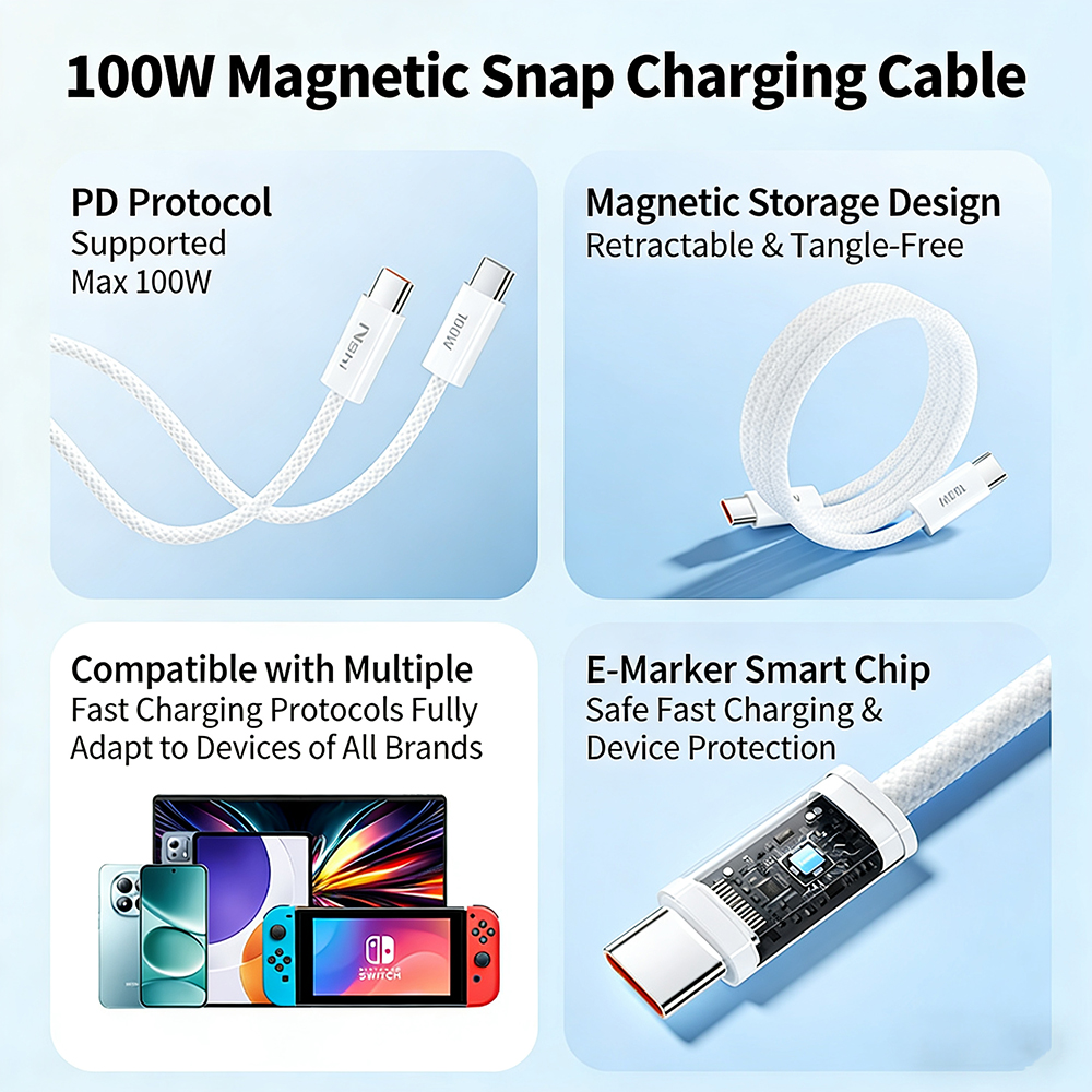 USB C to USB C Cable Magnetic Anti Tangle Flat Type C Charger Fast Charging Cable Compatible with iPhone Laptop Tablet