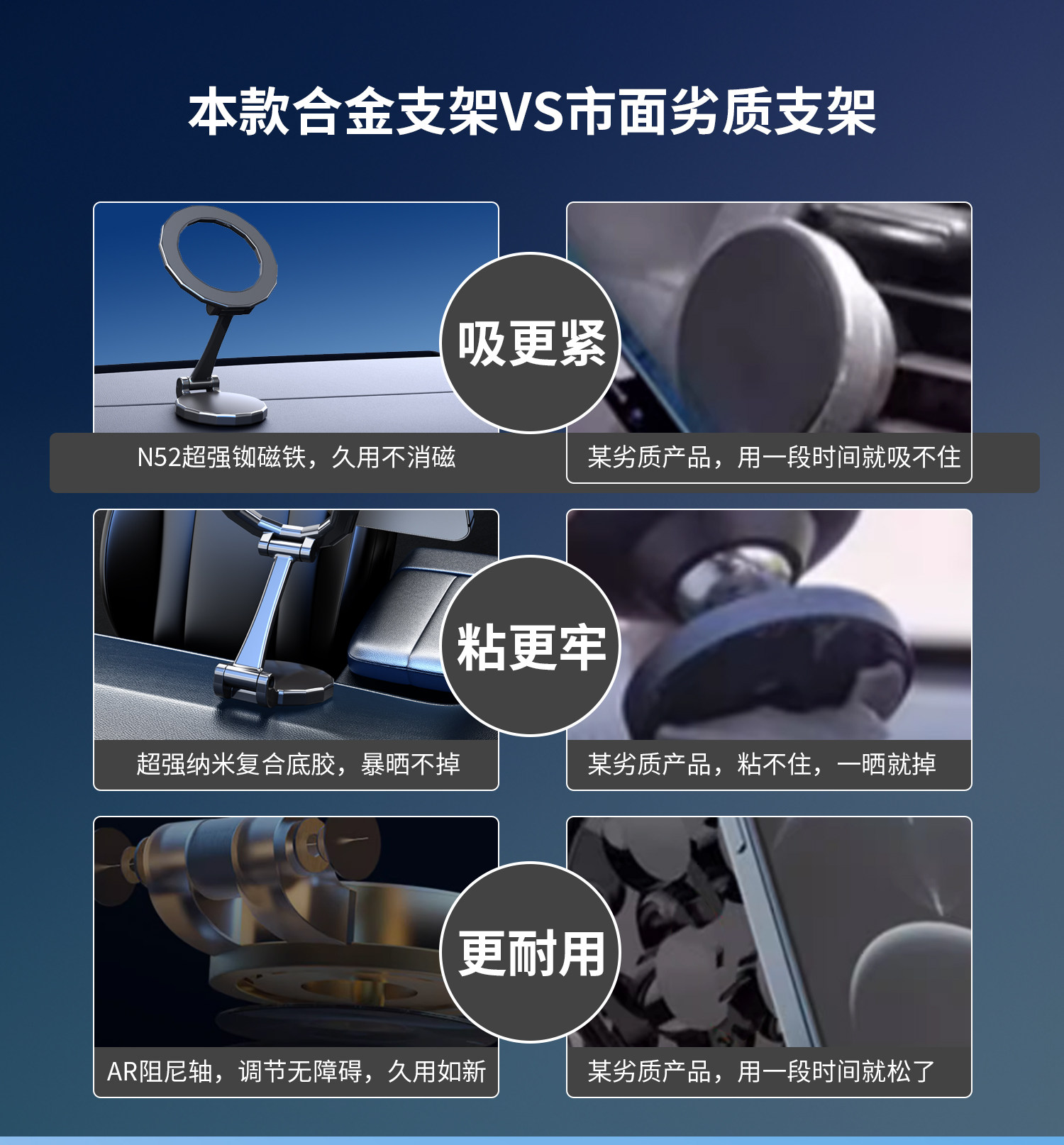 With 360° rotation, strong magnet and adhesive base, it is universally compatible with all car model