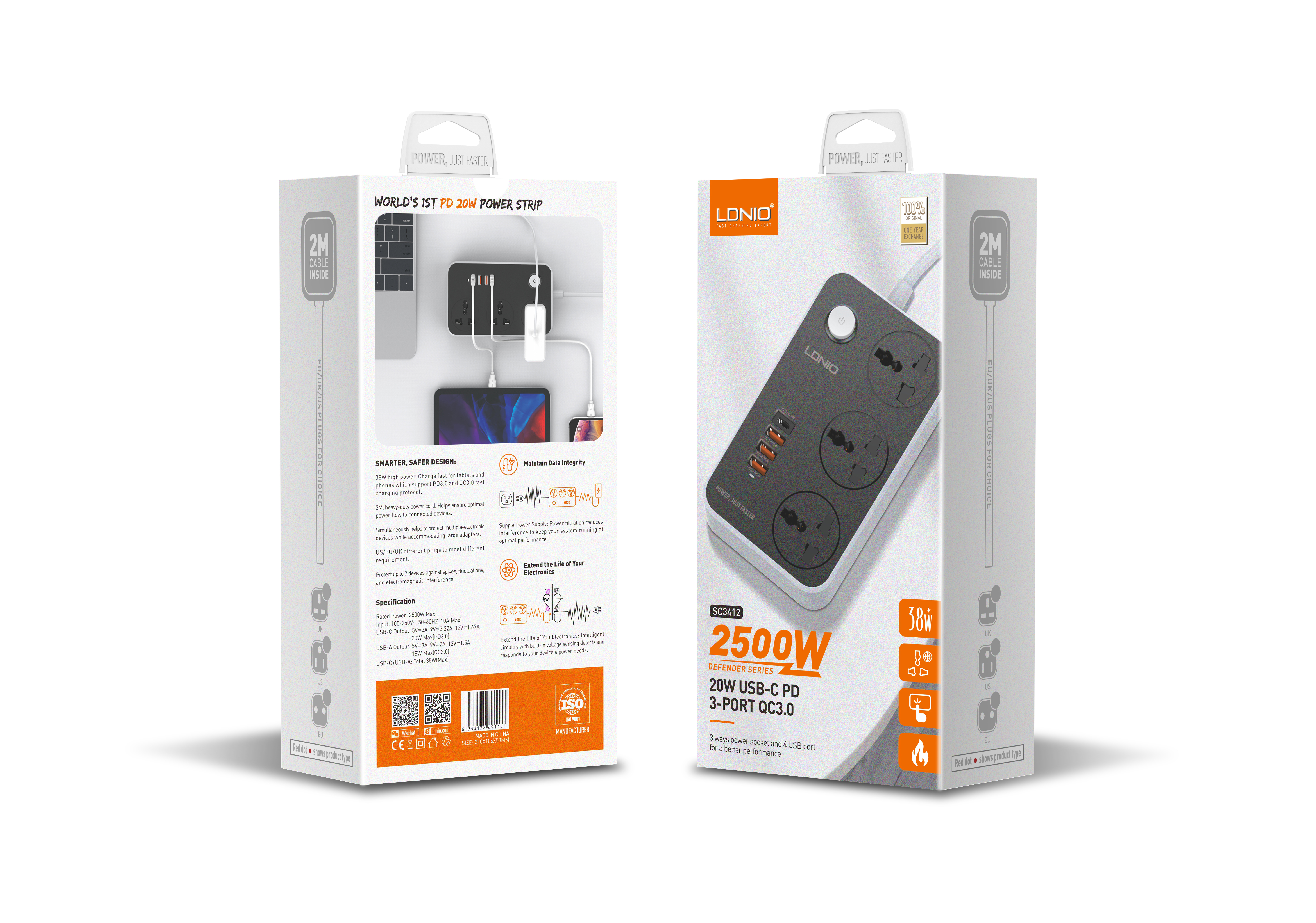 LDNIO--Power Strip--SC3412 "Universal 3 port + 4 USB POWER SOCKET POWER CORD:2M"