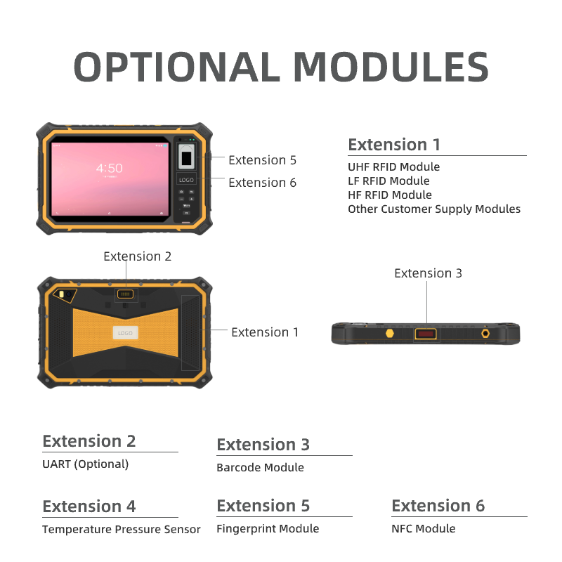 HUGEROCK T80 8 Inch Sunlight Readable 1000nit Handheld Barcode Scanner Nfc UHF Rfid Reader Fingerprint Rugged Android Tablet
